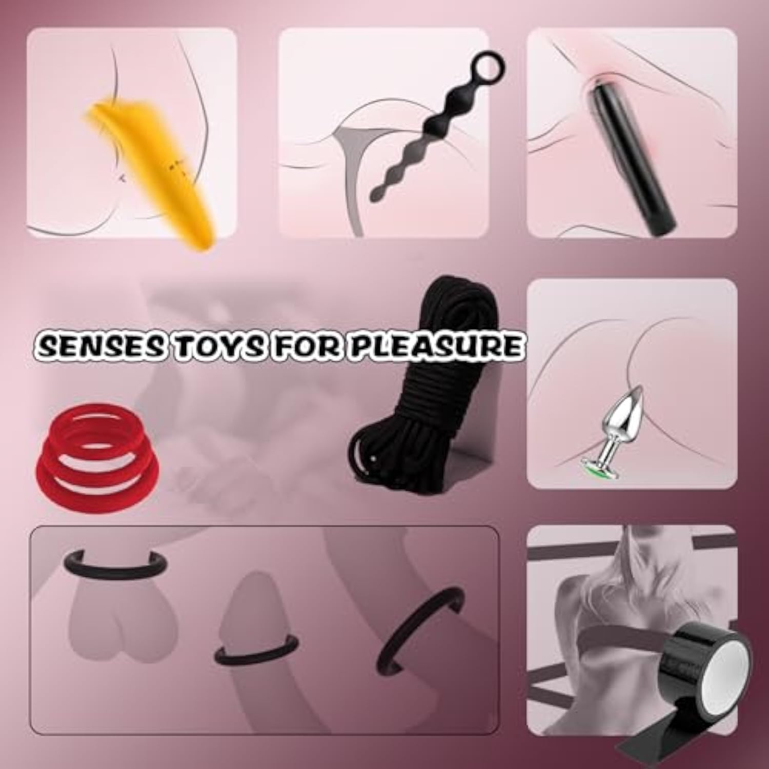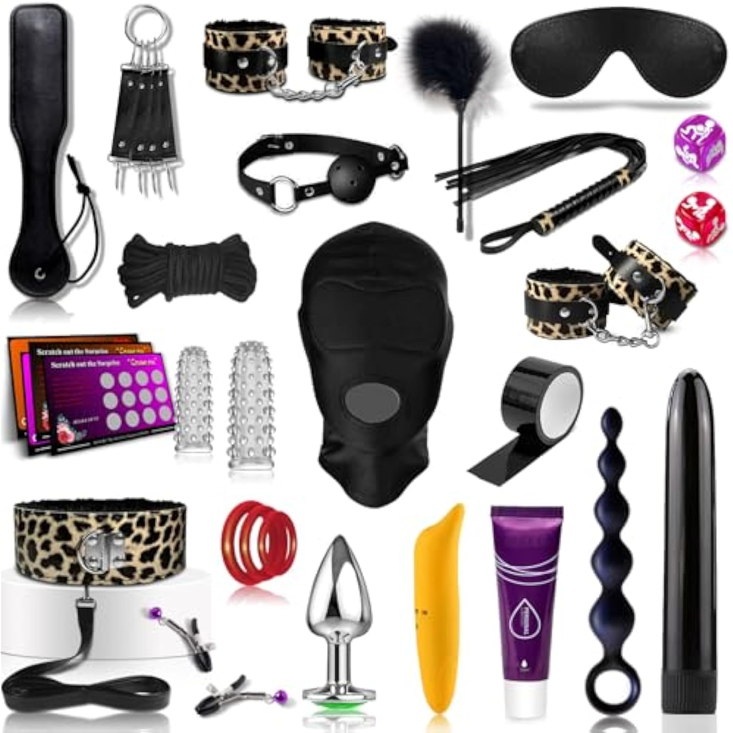 Bdsm Kit - 30Pcs Adult Toy Bondage Restraints Set With Paddle Handcuffs Mask And Anal Plug Games Card, Kink Sex Toys For Couples, Bdsm Set