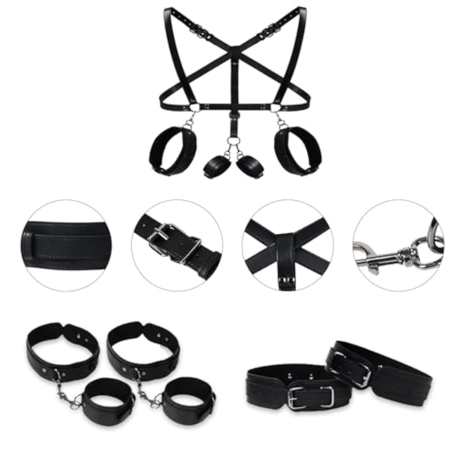 | More Ways To Sex Games 3Pcs: This Sex Bondage Kit Consists Of 6 Accessories In Total (2X Handcuff, 2X Thigh Cuff, 1X Cross Strap), Those Couples Sex Set Are Adjustable, So It Can Fit Almost All People Size.Made Of Superior Leather And Nylon Material, Safe And Comfortable. | | Perfect For Restraints Sex Beginners: The Outer Leather Material Of The Bondage Cuff And Collar Is Strong And Are Lined With Very Soft, Plush Material That Does Not Hurt The Wearer But Really Comfortable And Safe-She/He Has No Other Choice Except To Squirm In Pleasure! | | Become Restraint Advanced Player: If You Are A Thrill Seeker, Then This Bundle Is Perfect For You, Allowing You To Dominate Or Absolutely Obey In This Slave Game, Enjoy Role Play Games, Watch Your Lover Becomes A Slave That Obeys You. | | Reliable Quality Durable: Luxurious Restraint Strap. It Is Long And Durable Enough For Both Men And Women?To Make Delicate Restraints And Body Harnesses. The Material Is Waterproof, Just Wipe It With A Damp Towel After Each Use. | | Discreet Packaging: Our Bdsm Adult Sex Toys Restraint Kit Is Lightweight, Will Be Delivered To You In Discreet Packaging. Easy To Storage And Carry, You Can Take It Along With You For Traveling And Enjoy More Erotic Romantic Anytime Anywhere. | |