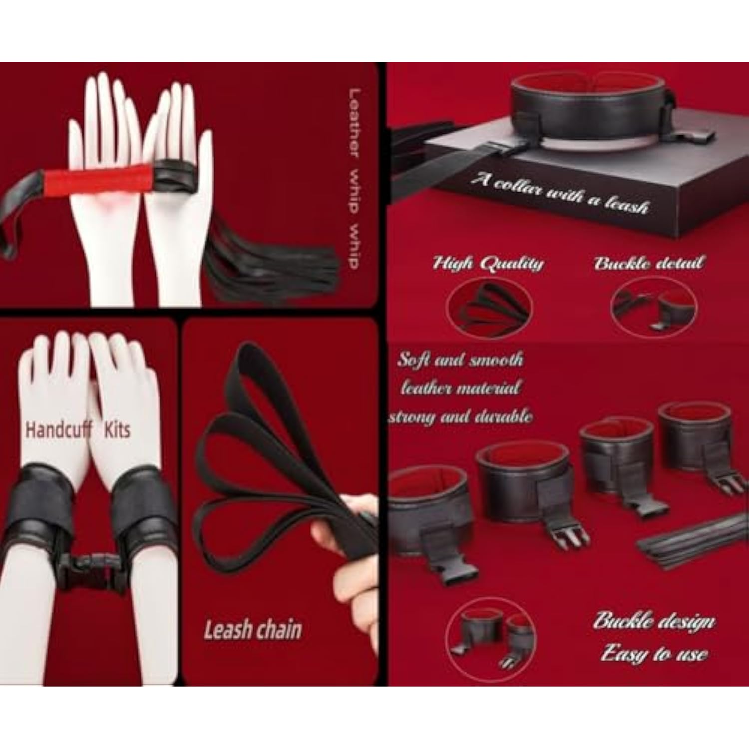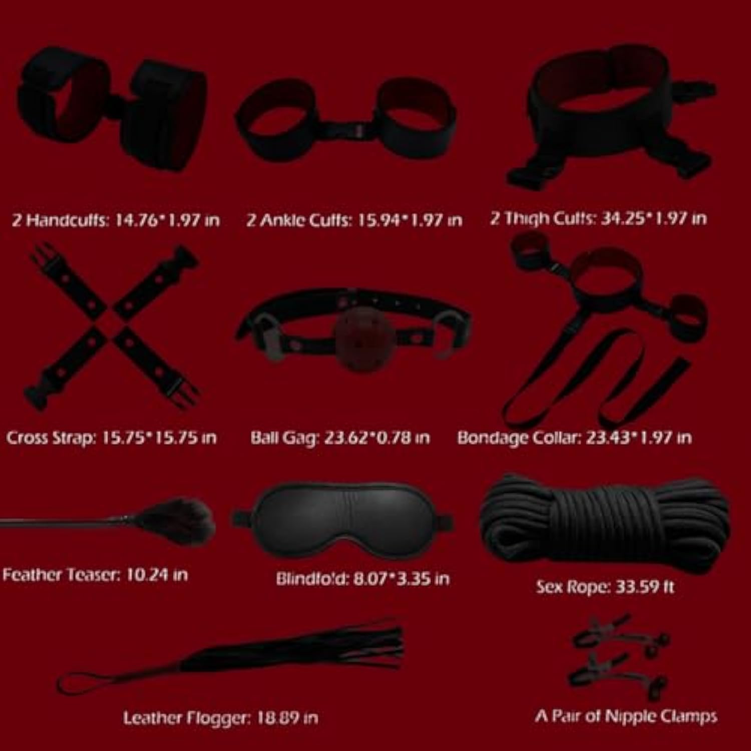 Bdsm Kit Sex Bondage Restraints Adult Sex Toys,Upgrade Sex Restraints Set 11Pcs Handcuffs Collar Ankle Cuff Blindfold Feather Tickler Gags Sex Rope Adult Games Couple Sex Toys For Women Men (Red)
