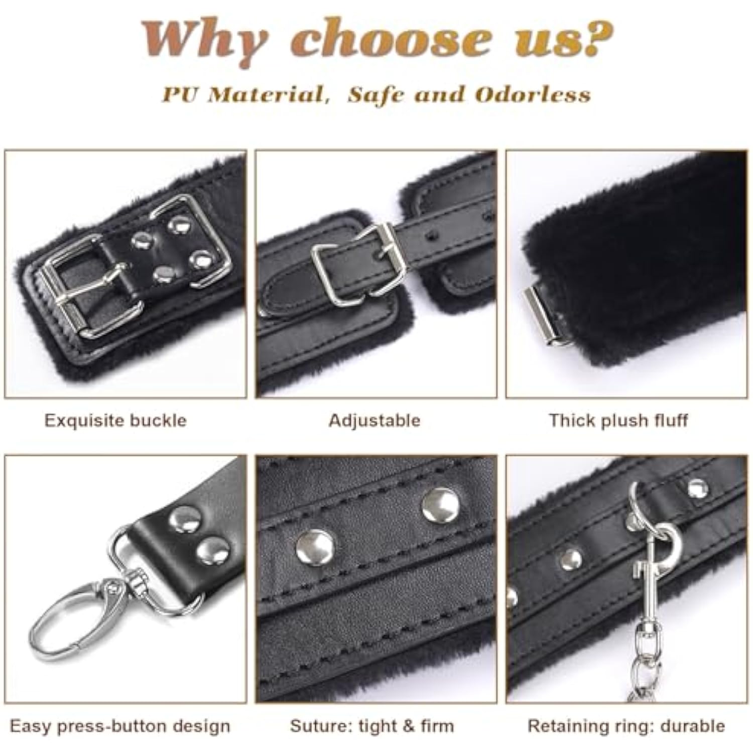 Bdsm Kit Sex Bondage Restraints Toys: Upgrade 11Pcs Sets With Adjustable Handcuffs Collar Ankle Cuff Blindfold Feather Tickler Adult Games Sex Toys For Men Women And Couples Foreplay Black
