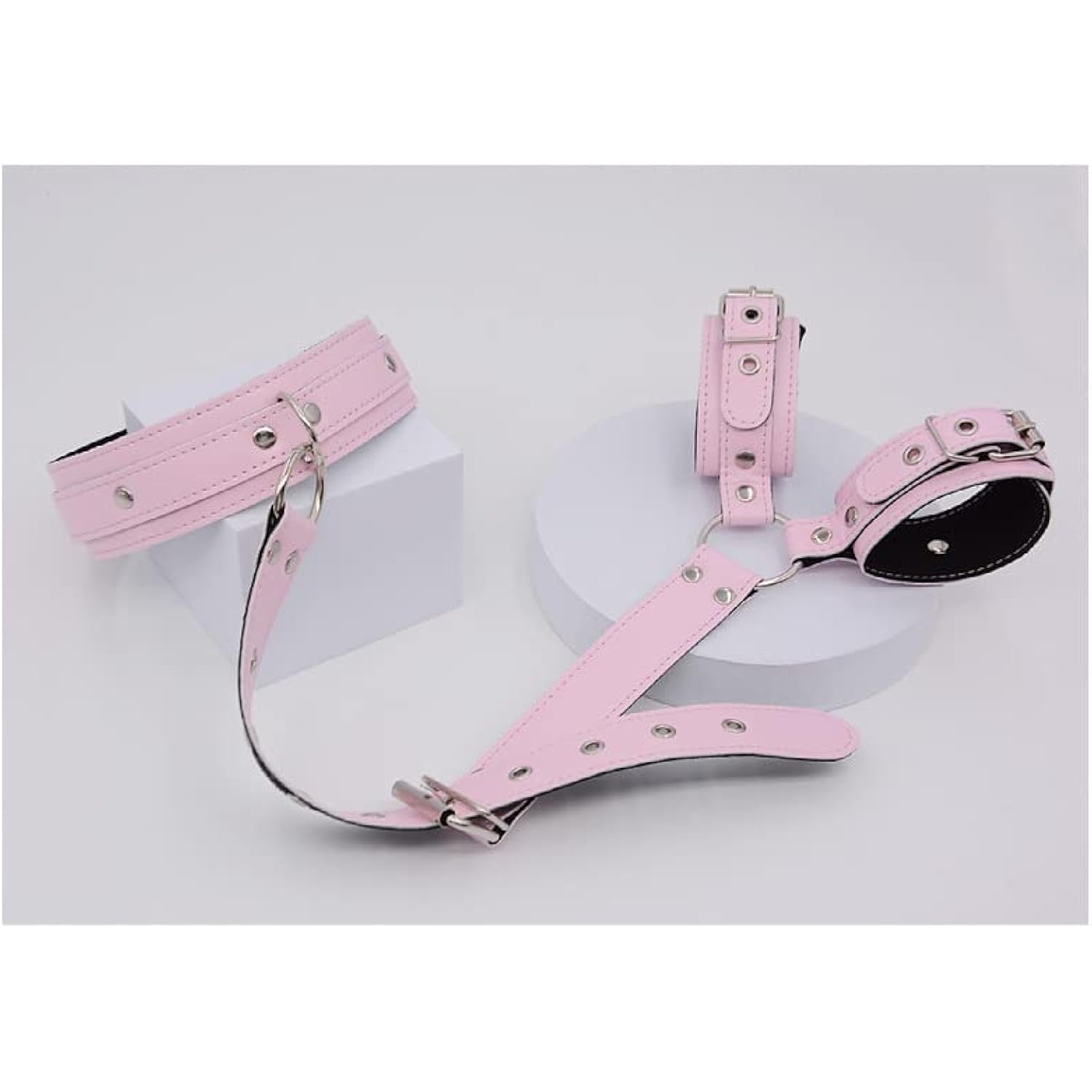 Bdsm Neck To Wrist Restraints Bondage Set Sexy Toys Slave Frisky Beginner Female Restraints Kit Props Collar Back Handcuffs Couple Sm Sex Game Tool With Adjustable Straps Bed Adults Play(Pink)