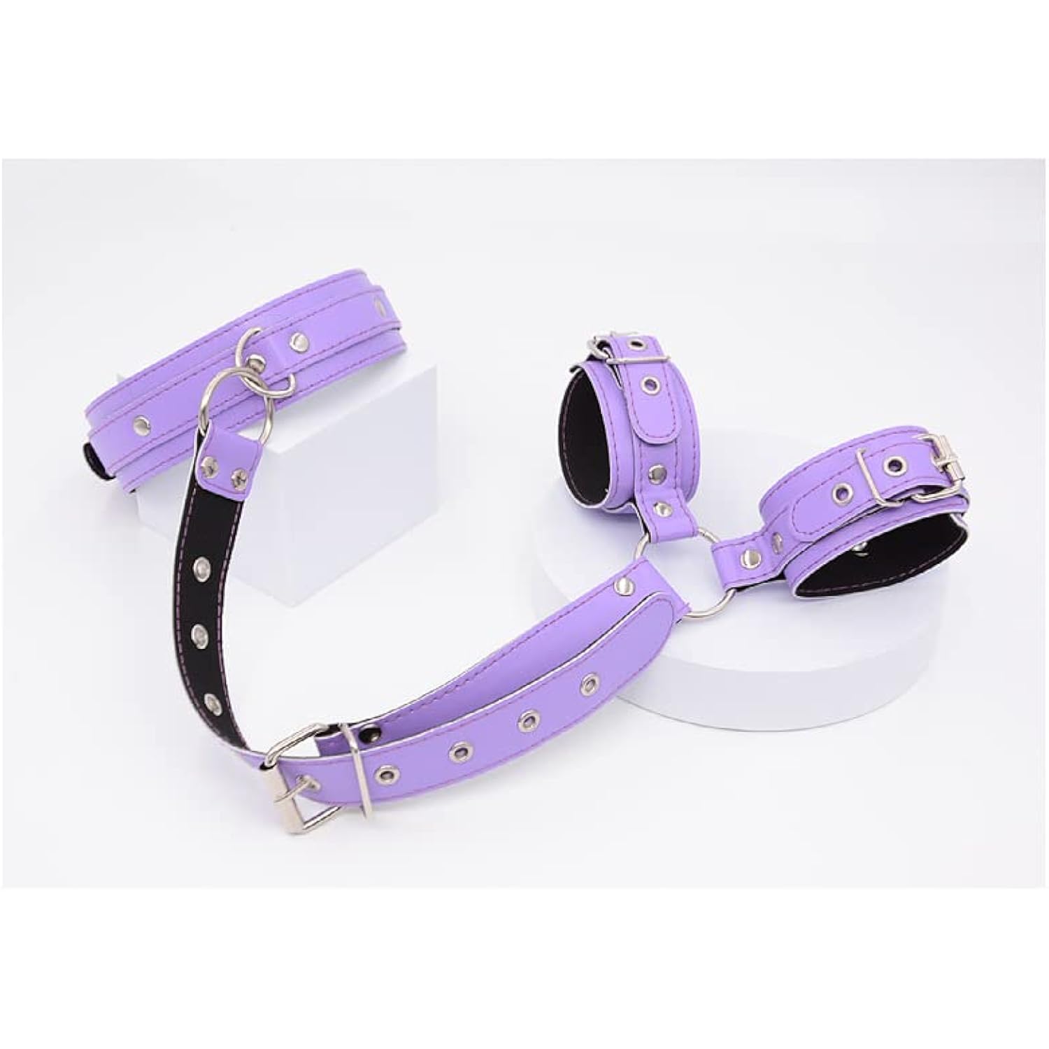 Bdsm Neck To Wrist Restraints Bondage Set Sexy Toys Slave Frisky Beginner Female Restraints Kit Props Collar Back Handcuffs Couple Sm Sex Game Tool With Adjustable Straps Bed Adults Play(Purple)