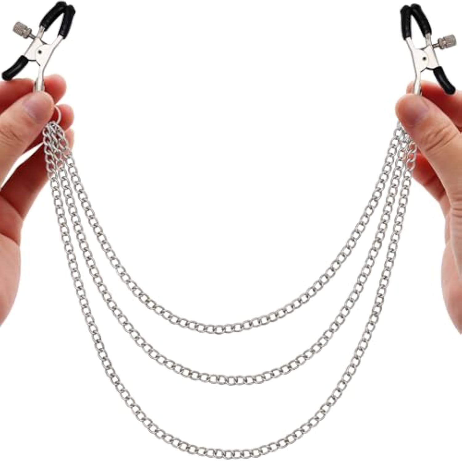 | Adjustable Nipple Clamps For Personalized Comfort β€” These Adjustable Nipple Clamps Feature Screw-Tightening Tips, Allowing You To Easily Control Pressure For The Perfect Level Of Stimulation. Ideal For Beginners Or Experienced Users Exploring Bdsm Accessories. | | Premium Fetish Gear With Elegant Chain Design β€” Crafted With Durable Metal And Soft Rubber Tips, These Nipple Clips Are Connected By Three Cascading Chains, Offering Both Aesthetic Appeal And Functional Restraint β€” A Must-Have In Your Fetish Gear Collection. | | Versatile Adult Toy For Couples’ Intimacy β€” Perfect For Couples Looking To Spice Things Up, These Nipple Clamps With Chain Enhance Sensory Play And Intensify Foreplay. A Great Choice For Those Exploring Adult Toys For Couples Or Kink Accessories. | | Soft-Coated Tips For A Gentle Touch β€” Designed With Smooth-Coated Ends That Help Reduce Pinching, These Nipple Clamps Offer A More Comfortable Experience While Still Delivering Effective Pressure And Stimulation. | | Lightweight Portable For Discreet Kink Play β€” Whether At Home Or During Travel, This Discreet Bdsm Accessory Fits Easily Into Your Toy Bag. An Ideal Gift Or Bedroom Upgrade For Anyone Looking To Explore Sensual Stimulation Or Beginner-Friendly Bondage. | |