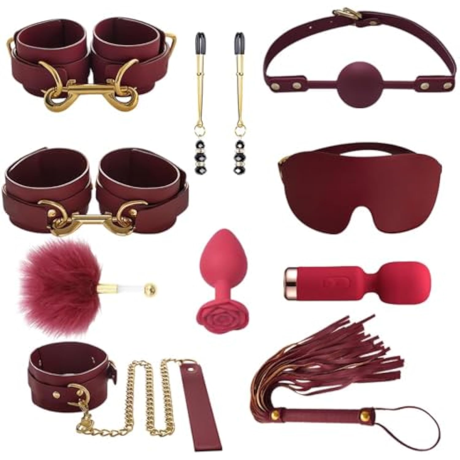 Bdsm Restraints Sex Toys Bondage Restraints Set Fetish Bed Restraints Kits For Beginners,Bondage Kit For Couples Sex (10Pc Red)