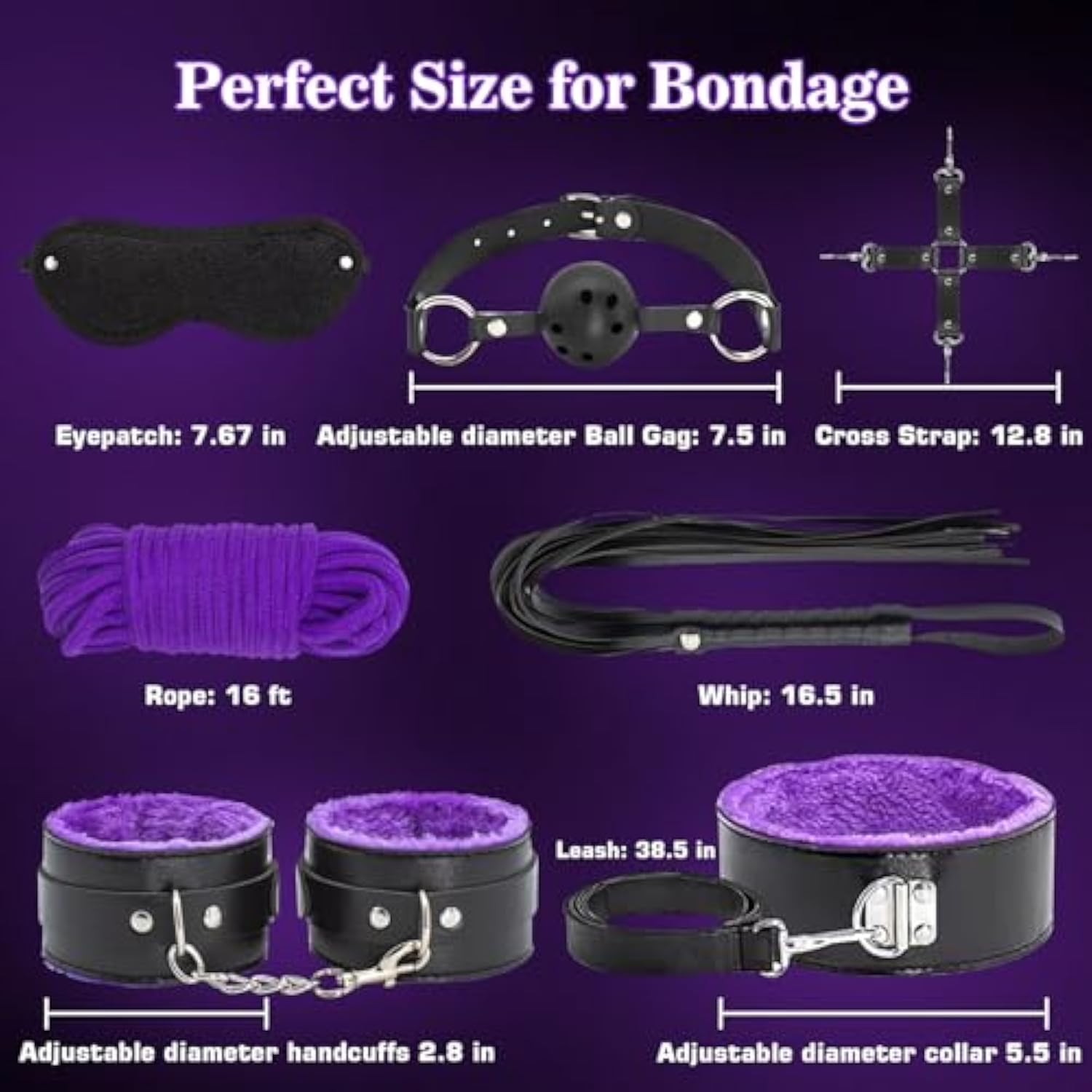 Bdsm Sex Bondage Kit Restraints - 12Pcs Sets With Adjustable Handcuffs Collar Ankle Cuff Blindfold Feather Tickler Anal Plug Adult Games Sex Toys For Men Women Couples Purple
