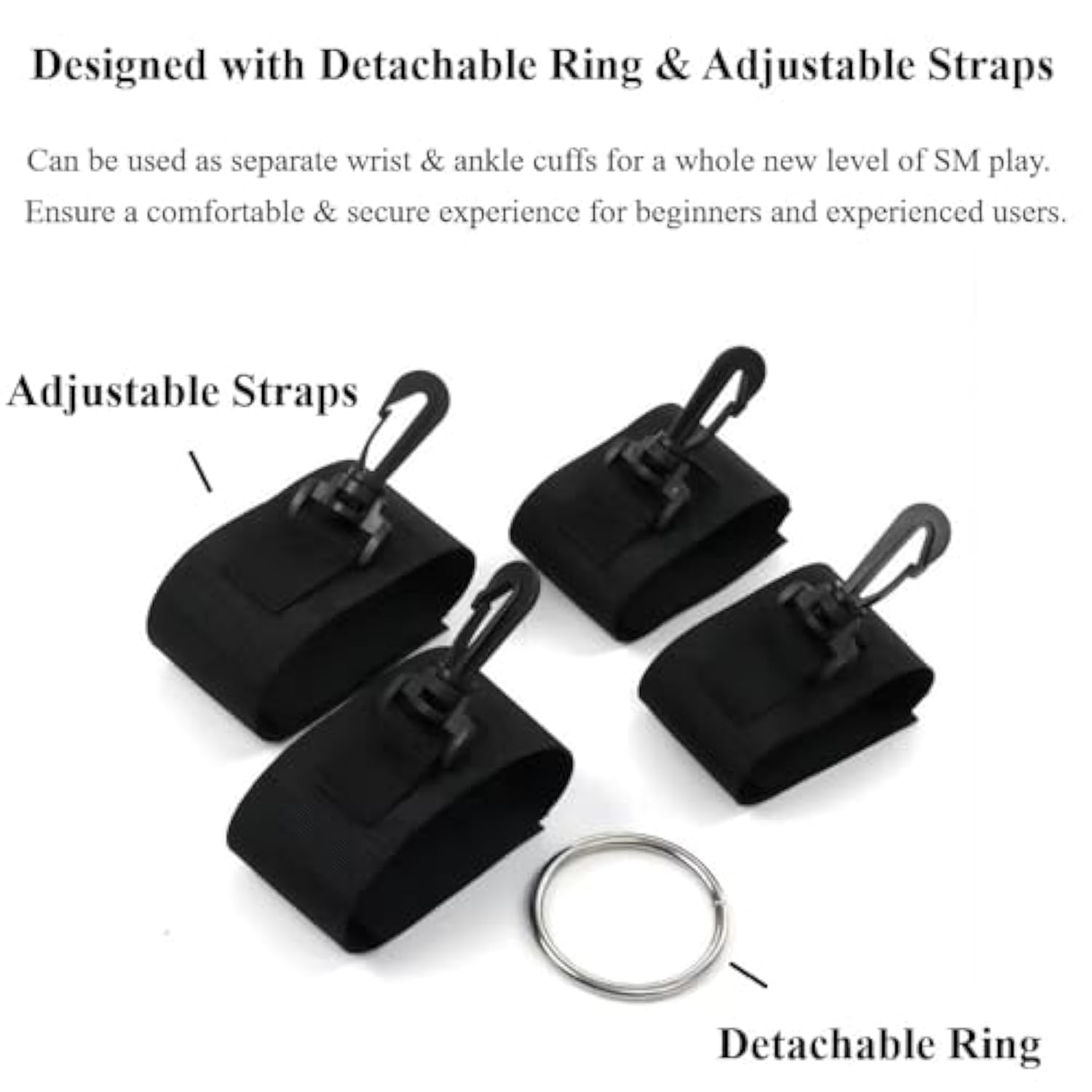 | ?Adjustable Bdsm Bondage Straps? Completely Removable And Can Be Used As Separate Wrist Cuffs And Ankle Cuffs For A Whole New Level Of Stimulating Play, Allowing The User To Easily Adjust The Bondage Straps To Fit A Wide Range Of Body Sizes And Shapes. Adjustable Straps Ensure A Comfortable And Secure Experience For Beginners And Experienced Users. | | ?Perfect For Couple Play?Using This Bondage Belt To Secure Your Partner'S Wrists And Ankles, You Can Then Easily Turn Her Body To Access Her Body In A Variety Of Positions, Perfect For Both Sm Slave Instruction And Role-Playing Games. | | ?Excite Your Partner'S Sexual Passion? Use It To Bind Your Lover, Control And Enslave Your Partner, Enjoy Bondage, Pleasuring And Teasing While Your Lover Is Tied Up! After Trying One Sexual Experience With The Bondage Kit, They Will Be Left Wanting More! | | ?Fits For Most Body Size? Four Adjustable Bondage Cuffs Are Designed To Fit All Sizes Of Wrists And Ankles, Ensuring A Snug And Comfortable Fit For All Body Types. The Bondage Cuffs Can Be Easily Adjusted To Your Desired Tightness. | | ?Quality Material?This Bondage Kit Is Made With Body-Safe Quality Materials, Soft And Thick Nylon Cuffs, Sturdy Velcro And Metal Connectors To Prioritize Safety And Comfort. Durable And Soft Bondage Straps Provide A Cozy Feel Against The Skin And Enhance The Overall Sensual Experience Of Intimate Moments. | |