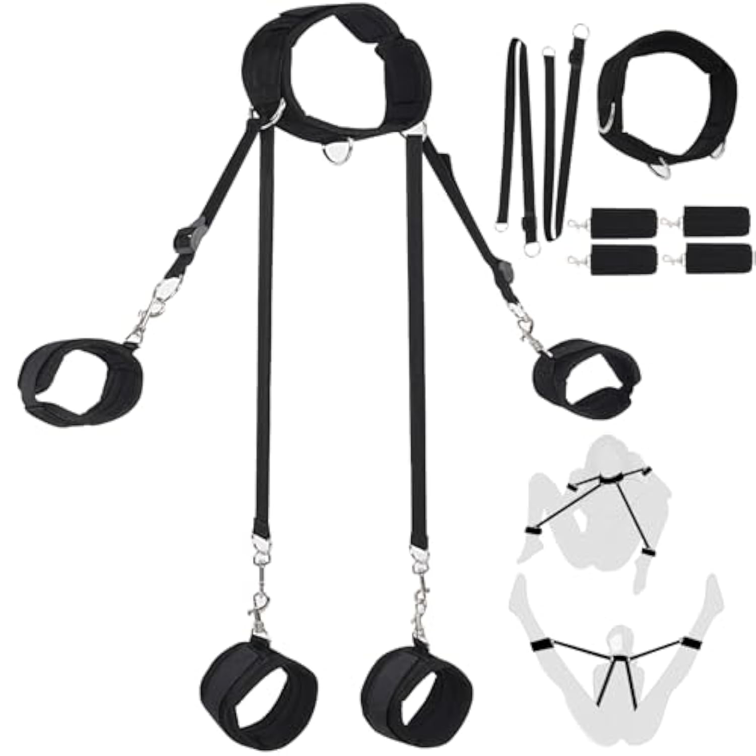 Bdsm Sex Toy Bondage Wrist And Thigh To Neck Restraint Set, Adjustable Sex Handcuffs And Ankle Cuffs, Suitable For Sm Beginners And Female Players