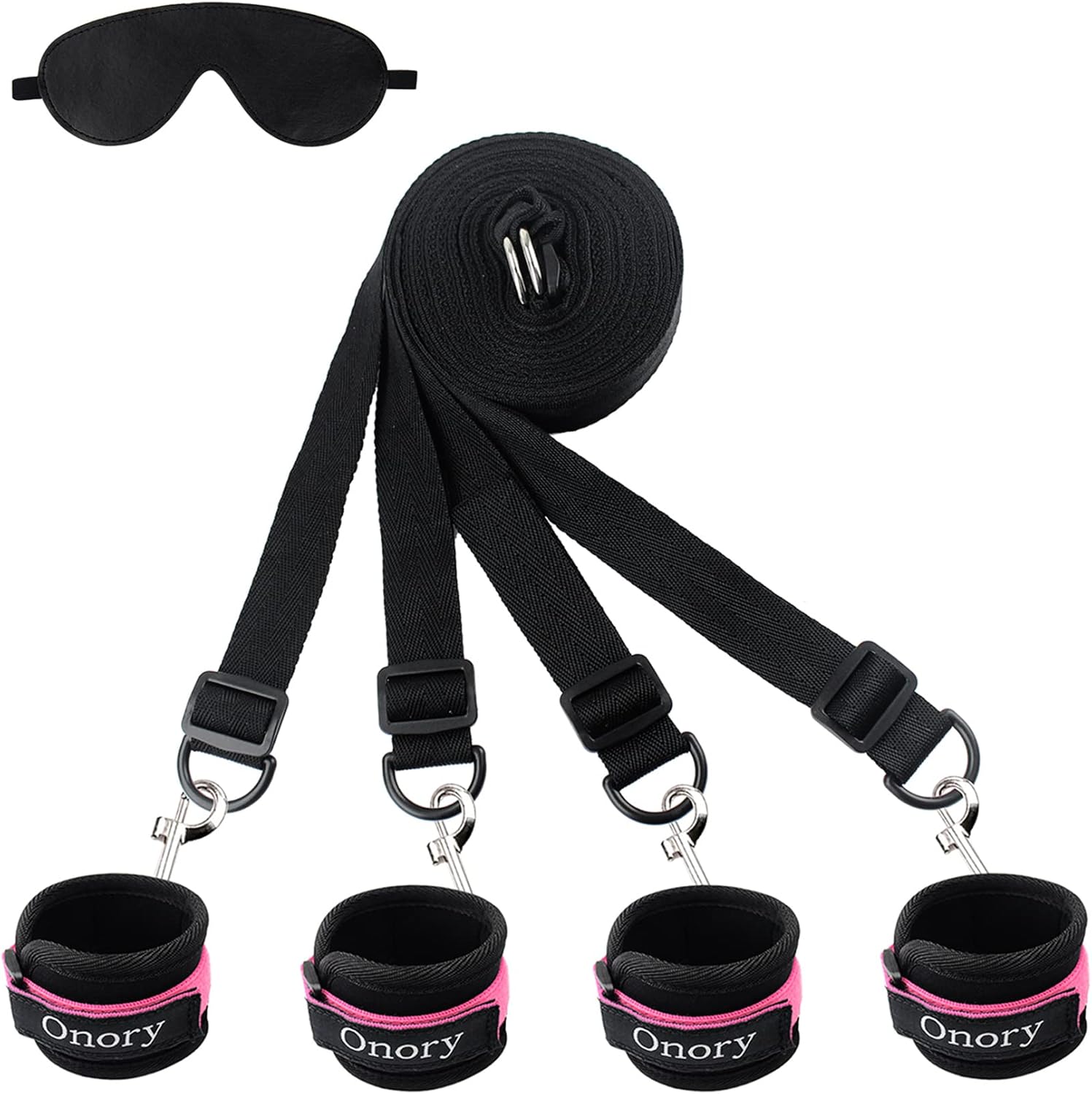 BDSM Restraint Kit with Eye Mask, Hand & Ankle Cuffs, Straps & Rope for Couples