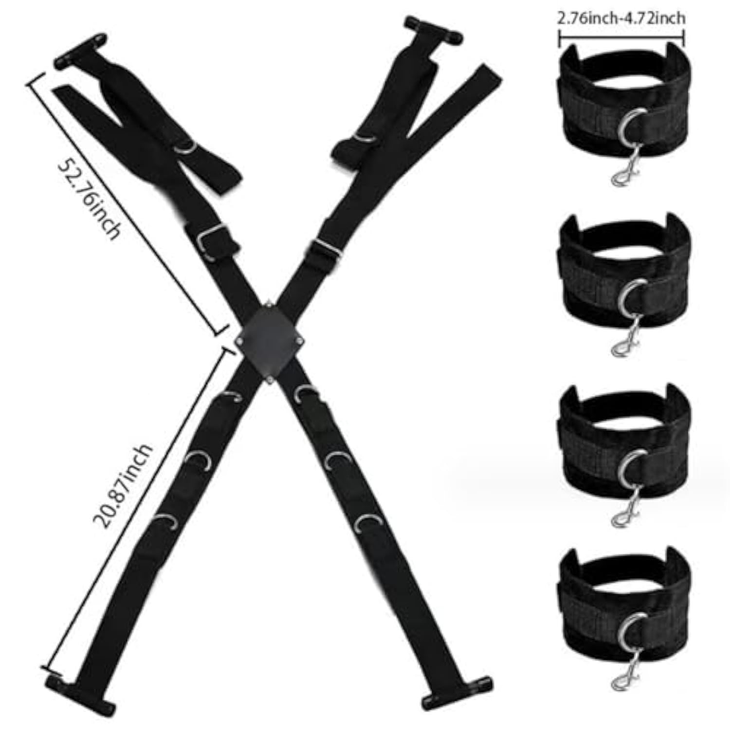 | Leather | | Imported | | Fun Bdsm Restraint Play Sweet View: Spread Your Lover’S Legs Wide For A View Of Their Most Sensitive Spots, Or Strap Them In With Their Legs Bent For Easy Access To Their Every Fold And Curve. Every Inch Of Their Skin Is Yours To Explore | | Experiencing Excited Sensation: With The Door Restraints, You’Ll Revel In The Feeling Of Your Lover’S Eyes Trailing Cross Your Body As You Are Helpless, Vulnerable, And Waiting In The Trembling Anticipation For Their First Touch. Surrender Both Body And Mind To Your Lover Tonight As They Carry Out Your Deepest Desire And Use Your Body To Fulfill Their Own. Realize Any Fantasy And Push Your Boundaries Tonight | | Secure Your Lover Easily: Throw The Bar Hooks Over The Door, Strap Your Partner’S Wrists And Ankles With 4 Cuffs In To The Cross Style Design Restraint. Taking No More Than 3 Minutes, You Could Carry Out Your Lover’S Every Desire With The Over The Door Cross, And Drink In Their Exposed And Vulnerable Body | | Comfort For The Submissive: The Sex Handcuffs And Ankle Cuffs Are Adjustable And Soft, Keeping You Ultra-Comfortable As You Twist And Squirm Against Your Restraints. The Easy To Use Universal Clasps Make Changing Positions Take A Matter Of Seconds | | Bondage Games Can Promote Relations And Help To Find New Fun In Your Love Life | |