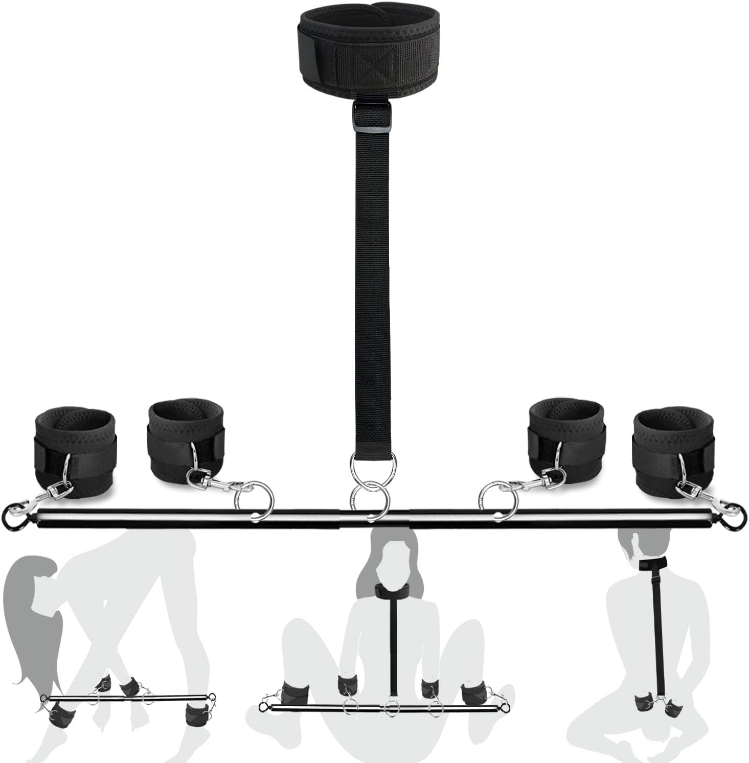 Adjustable BDSM Restraint Kit – Neck to Wrist Cuffs with Spreader Bar for Couples