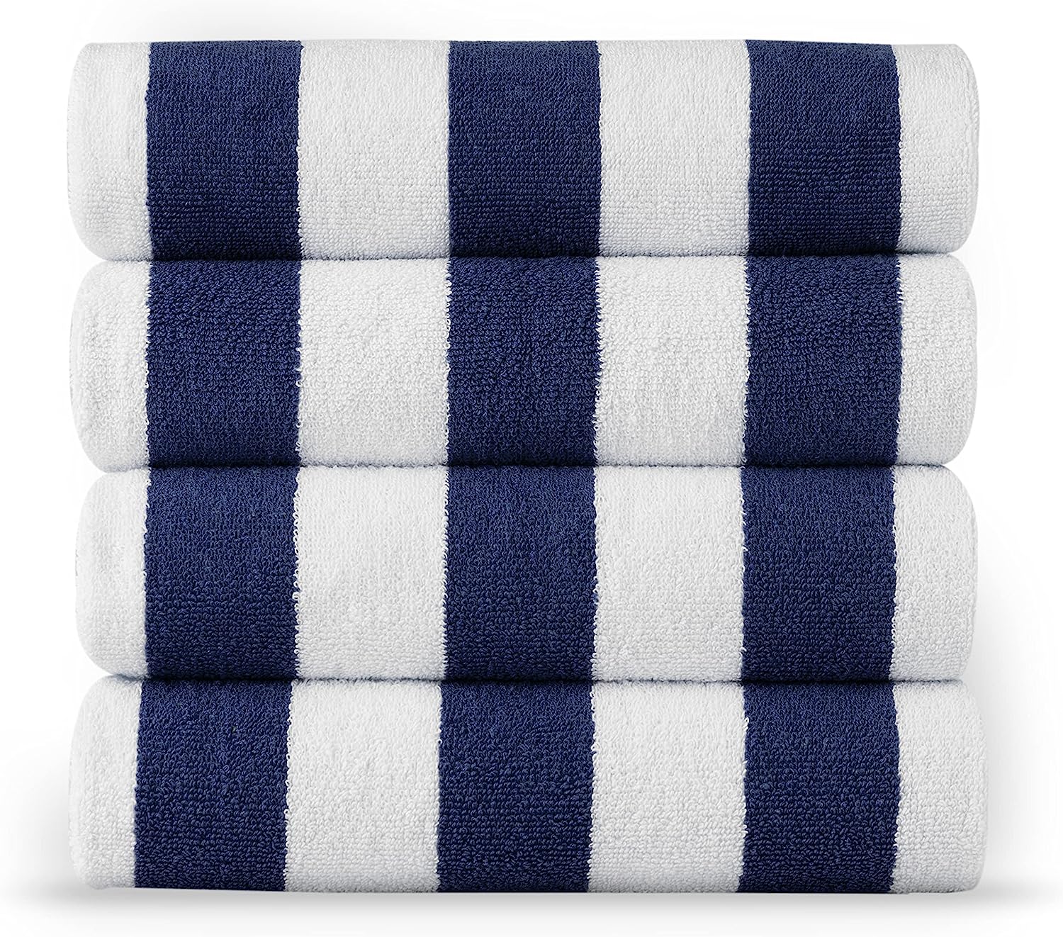 Beach Towel 4 Pack - Beach Towels Oversized, Cabana Stripe Large Beach Towel, Quick Dry Pool Towels, Beach Essentials for Women, Soft & Absorbent Oversized Beach Towel (36" x 72”) - Blue