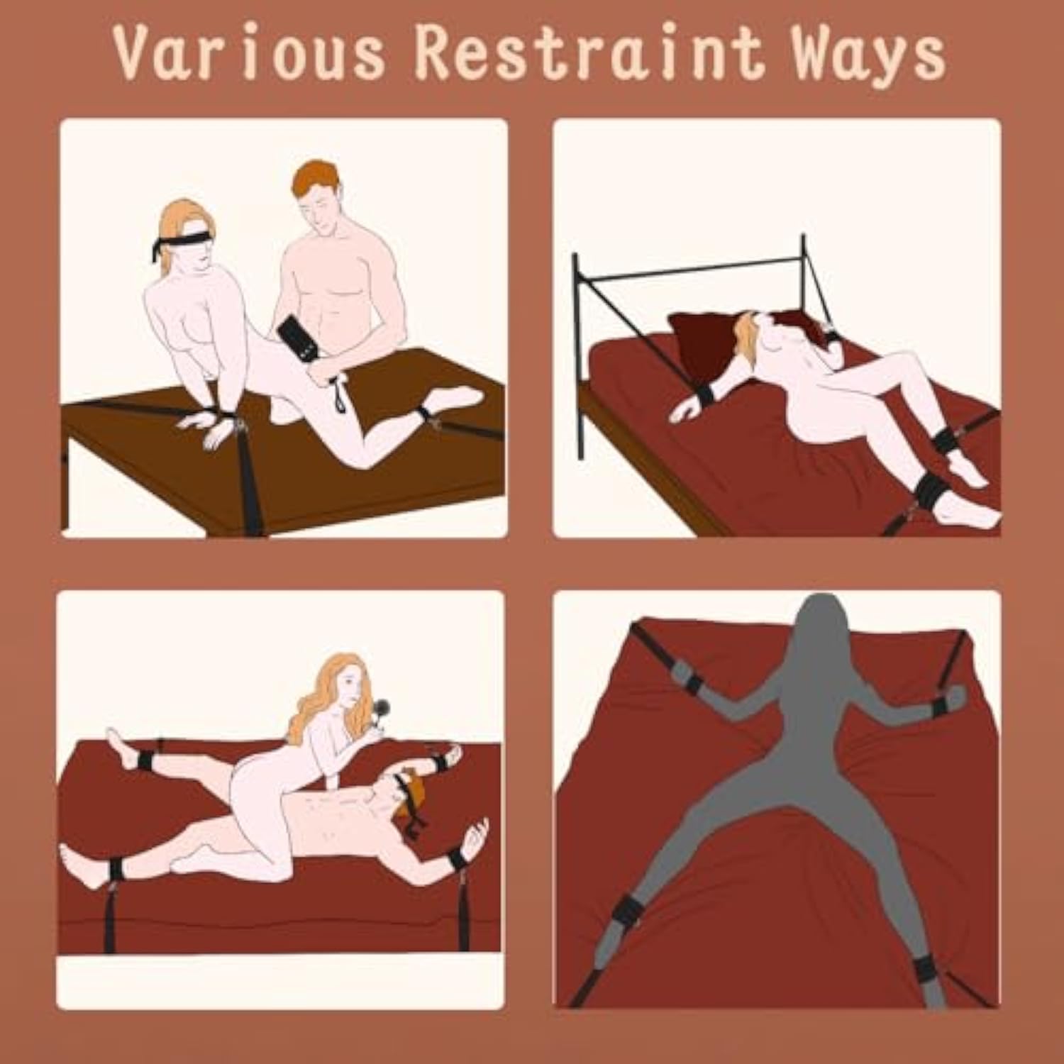 - Bed Bondage Kits: The Bed Restraint Set Comes With 4 Separate Straps: 59 Inches Each, 2 Handcuffs, 2 Ankle Cuffs, Blindfold, Paddle, And Feather.Whether You Are A Bdsm Beginner Or An Experienced Sm Lover, This Bondage Kit Can Satisfy Your Sexual Needs <