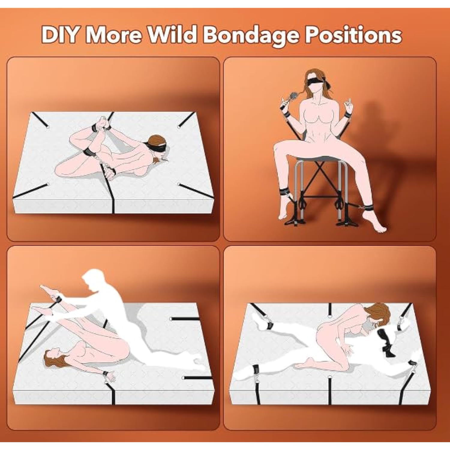 | 4 Adjustable Bdsm Bed Binding Straps - The 4 Individual Straps Are Made Of High Quality Nylon With Adjustable Lengths For Lighter And More Comfortable Use, Allowing For Quick And Easy Bondage. The Adjustable Length Is Designed To Fit Most Bed Sizes. | | Delicately Designed, Comfortable And Fluffy Fleece Lining - The Handcuffs And Ankle Cuffs Are Lined With Soft And Delicate Fluffy Lining, Which Makes Them Comfortable And Safe To Wear Without Hurting Your Wrists And Ankles. The Straps Can Be Adjusted In Size To Suit Each Individual'S Needs, Perfect For Adult Couples Who Are Using Bdsm Bed Bondage For The First Time. | | Reliable Performance And Durable Quality - High Quality Nylon, Non-Toxic And Odorless, Will Not Cause Irritating Damage To The Skin. Bed Bondage Set Is Made Of Wear-Resistant Nylon, Reliable Performance, Not Easy To Wear And Tear, Can Be Used Repeatedly For A Long Time, High Quality, So You Can Rest Assured And Boldly Enjoy The Fun Of Bondage And Sex. | | Universally Designed Sm Bed Bondage Kit - The Buckle Design Allows For Quick Setup And Removal, And The Handcuffs And Ankle Cuffs Are Fully Adjustable For Most People. You Can Also Adjust The Length Of The Bondage Straps According To Your Needs, Change A Variety Of Bondage Styles And Experience Different Exciting Play, Perfect For Beginners And Experienced Enthusiasts. | | Multiple Sm Play Experiences - The Soft Sex Blindfold Shields Your Partner'S Eyes, Amplifying The Senses For An Immersive Experience Of Sexual Pleasure. Delicate Feather Ticklers For Teasing, Allowing Partners To Get Into The Mood Faster And Explore New Stimuli. Additionally, Our Bdsm Will Be Delivered To You Discreetly In A Discreet And Hidden Box. | |