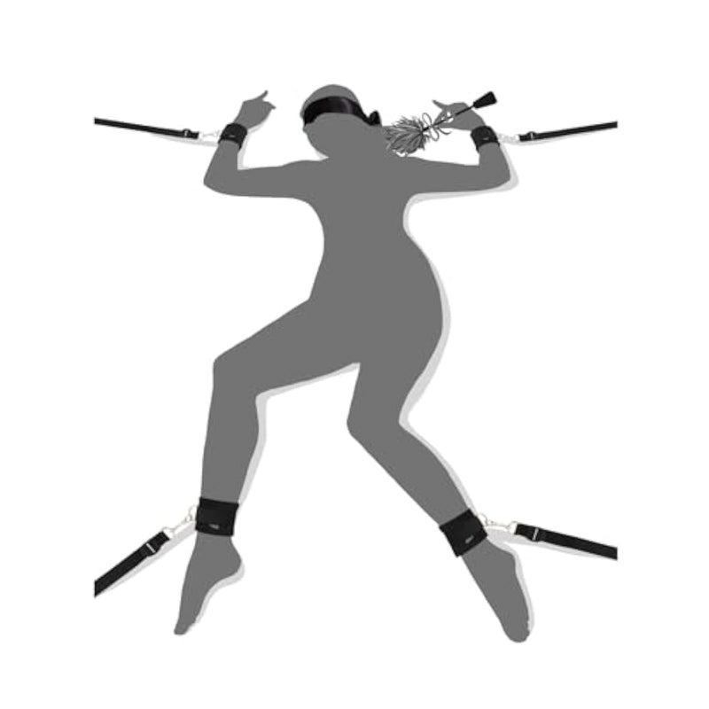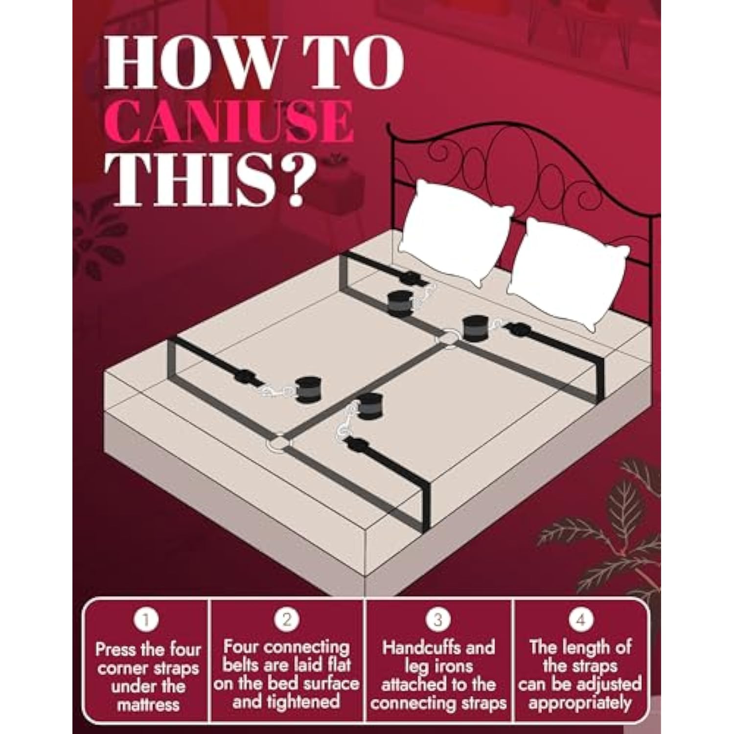 Bed Sex Bondage Kit Restraints - Upgrade Under Mattress Bed Bondage Bdsm Sets With Wrist Ankle Cuffs And Tickler Blindfold Adult Sex Toys Games For Men Women And Couples | King Size