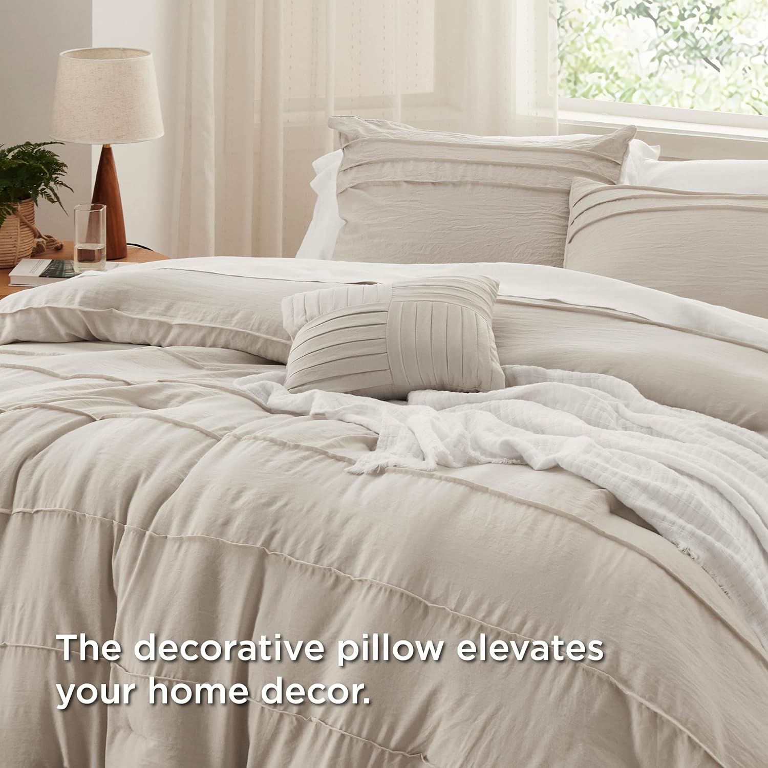 Beige Queen Comforter Set - 4 Pieces Pinch Pleat Bed Set, Down Alternative Bedding Sets For All Season, Includes 1 Comforter, 2 Pillowcases, And 1 Decorative Pillow