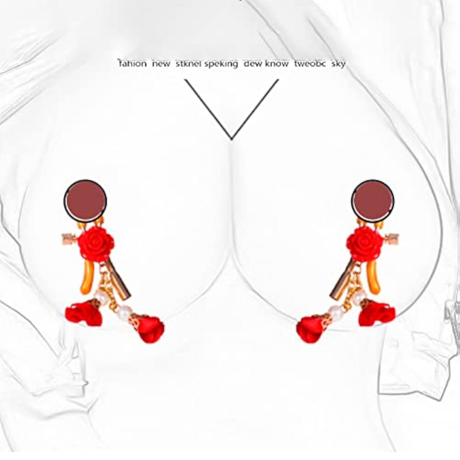 Bells Nipple Clamps Breast Chest Clamps Nipple Rings Noose Non Piercing Bra Body Chain For Sexual Pleasure Red Rose