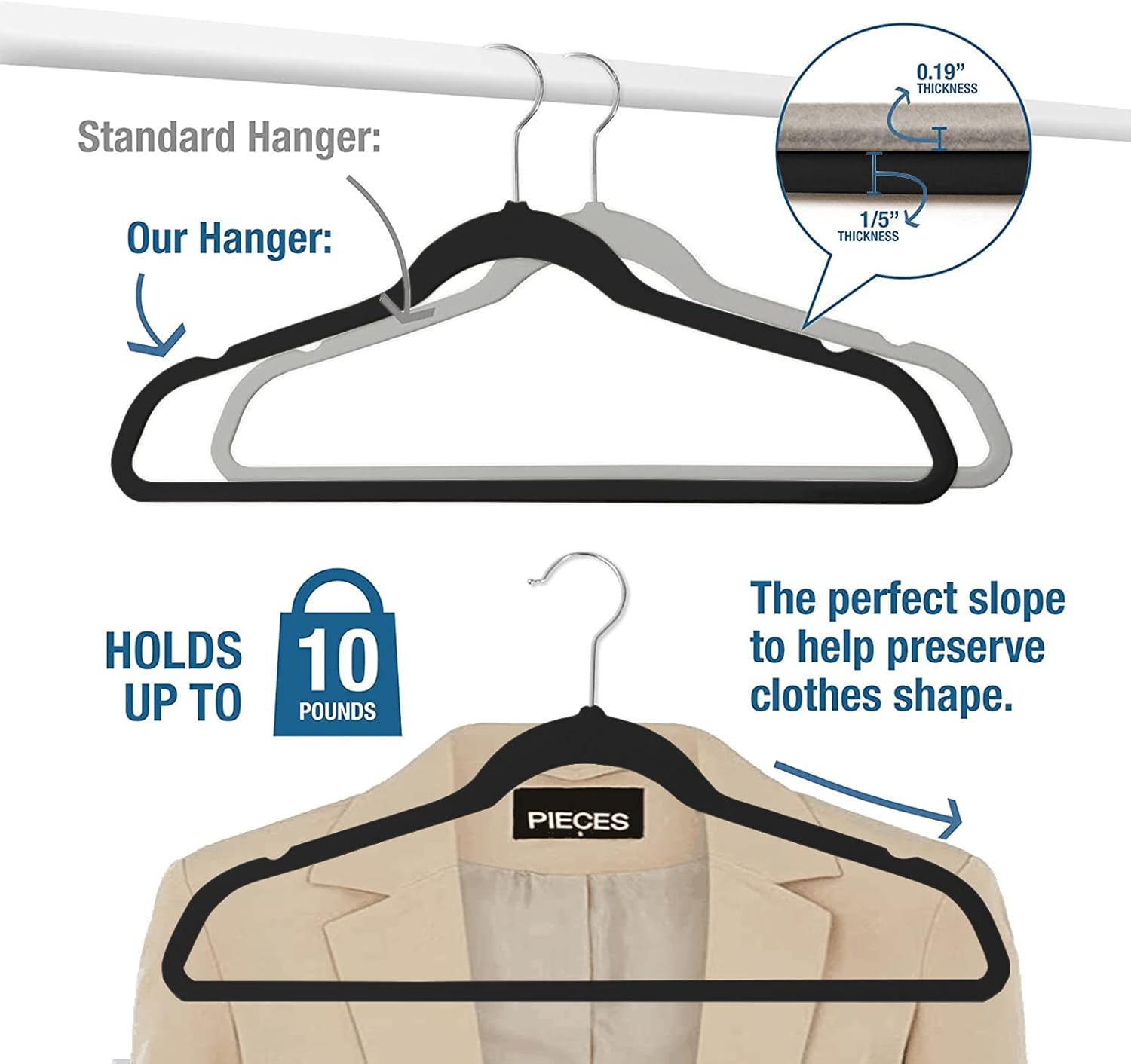 - ă Hangers Space SavingăUltra thin plastic hangersïŒ with only 0.2â thickness that maximize your closet space by at least 50%, keep your closet, storage space, or dorm room even laundry room more organized.