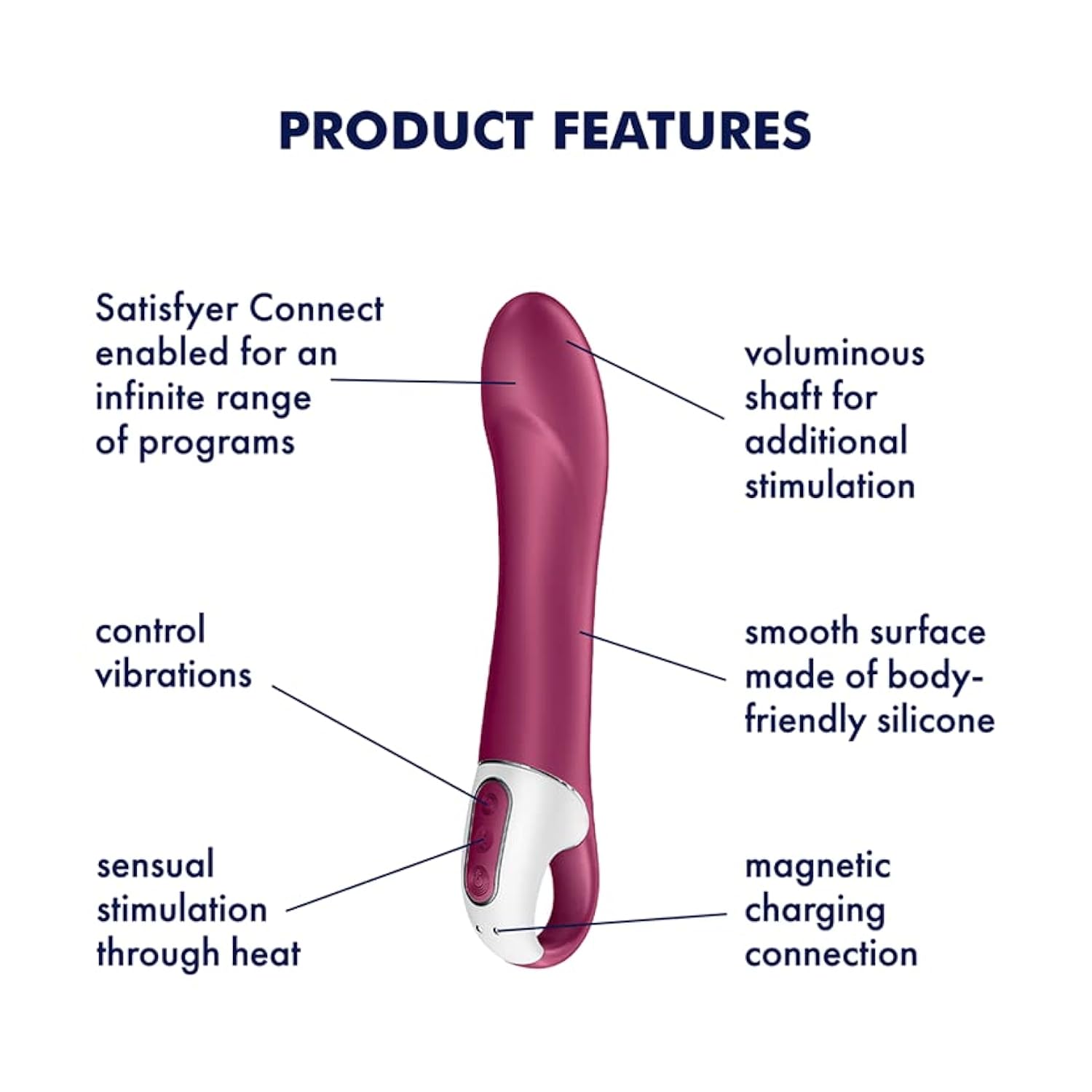 | Warming Vibrator - The Warming Function Of This Vibrator Helps To Relax The Pelvic Floor Muscles And Increase Circulation, Intensifying Your Pleasure And Orgasms. | | G-Spot Stimulation - Thanks To Its Xxl Size Of 22.5 Cm And The Slightly Curved And Rounded Tip, It Distributes Heat Particularly Effectively, And Effortlessly Reaches Your G-Spot. | | Intuitive Control Panel With Retaining Ring - Find Your Favorite Vibe Intuitively At The Push Of A Button And At The Same Time, Have A Firm Grip On The Passionate Pleasure Bringer - Even When Things Get Wet. | | Free App Control - With The Free Connect App, Available For Ios And Android, Turn Your Phone Into An Intuitive Remote For Your Big Heat. Simply Connect Your Toy Via Bluetooth And Get Ready To Experience The Endless Options Our App Has To Offer. | | Waterproof - Big Heat Is Ipx7 Waterproof Rated, Inviting You To Enjoy Sensual Pleasure In The Shower Or Bath. It'S Protected Against Immersion In Water Up To 1 Meter Deep For Up To 30 Minutes Of Use. | |