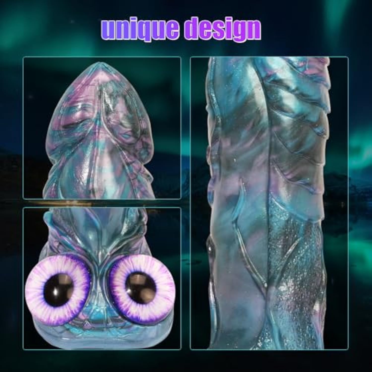 - ?Fantasy Monster Dildo?Our Unique Monster Anal Dildo Abyss-Eye, Crafted With Exclusive Color-Mixing Craftsmanship. This Fantasy Dildo Has A Gorgeous Color Combination Of Blue-Green With A Hint Of Purple.Its Back Simulates The Fish Scales With Clear Patt