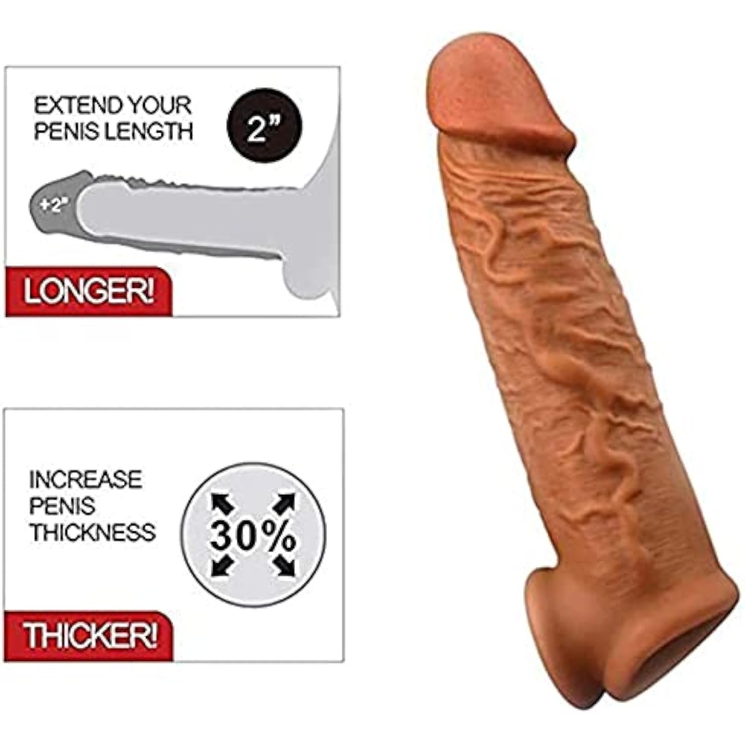 Bigger New Soft Realistic Sleeve Extender Sheath For Men Reusable Male Enhancement Extension Sleeve-1578 (Brown)