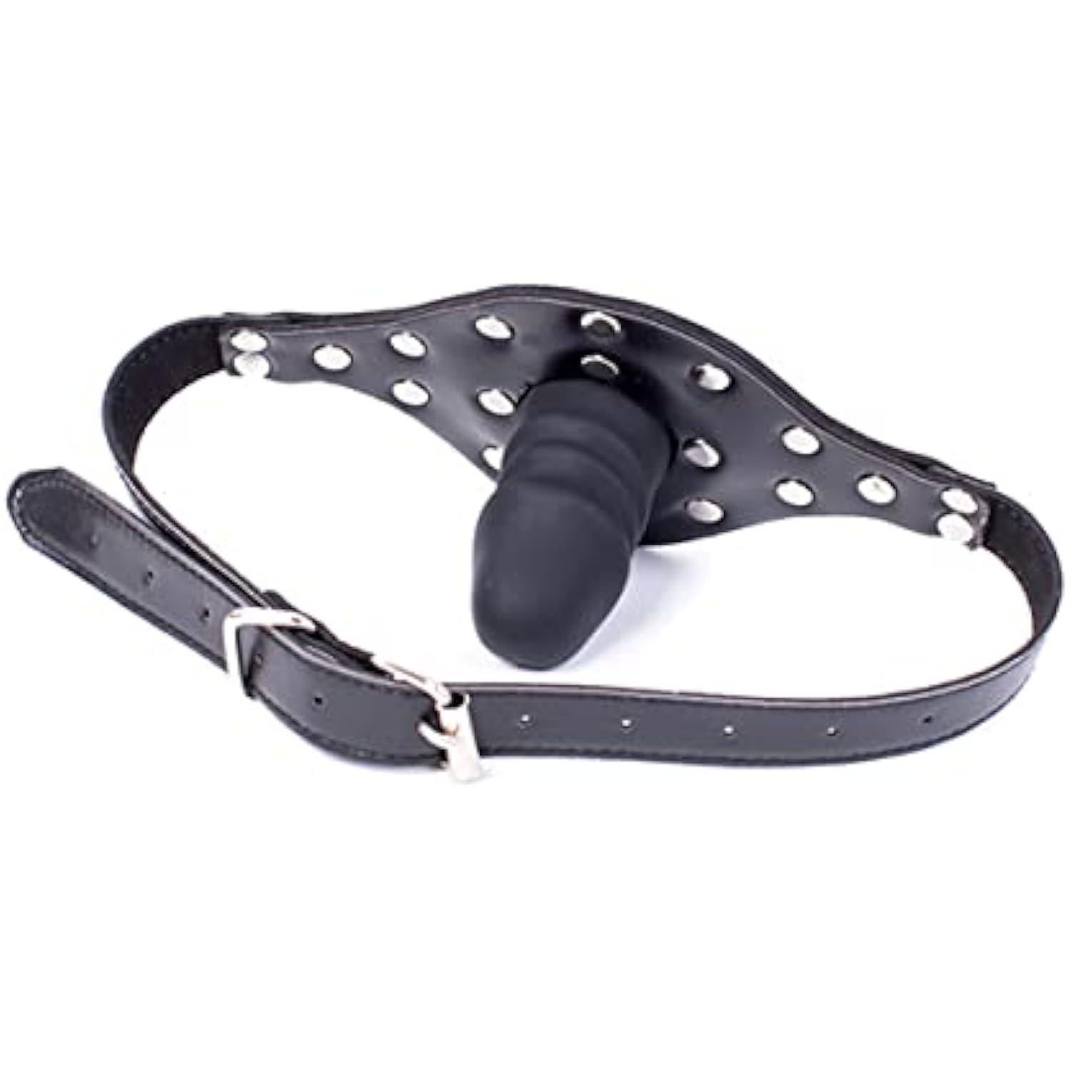 Black Rivet Mouth Plug Silica Gel Dildo With Adjustable Leather Strap For Couple Mouth Gag Sex Restraint Set (Length: 6Cm, Silver)