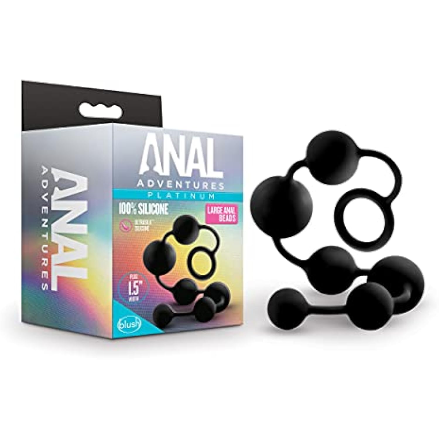 - Blush Anal Adventures Platinum - Advanced 16 Inch Large Puria Silicone Anal Beads - Ultrasilk Smooth - Sturdy Retrieval Ring - Flexible - Graduated Beads For Comfort, Sex Toy - Black