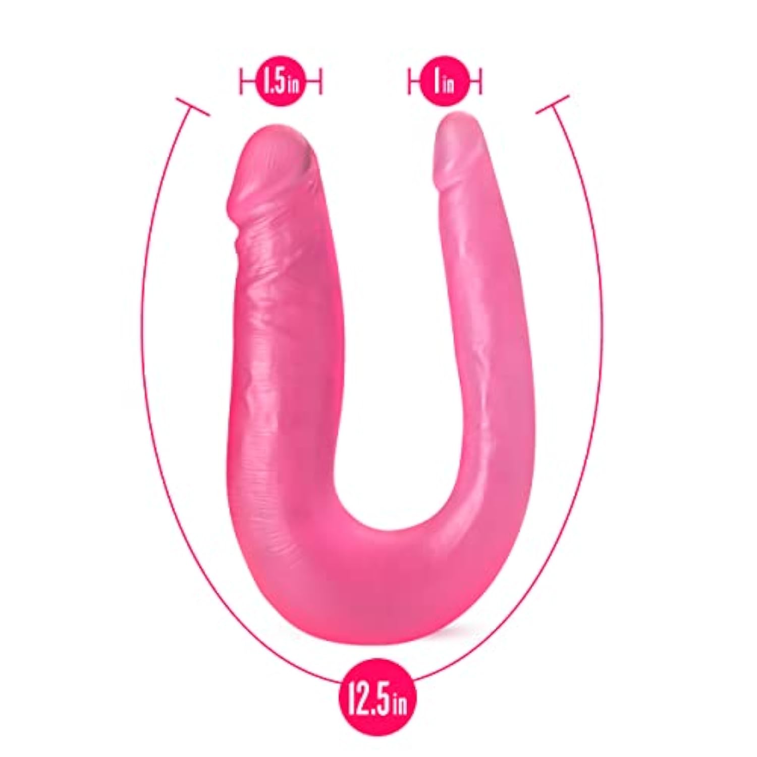 Blush B Yours 12.5” Sweet U-Shaped Dildo For Double Penetration, 1 Wide 1 Narrow End Realistic Silicone Double Dildo - Beginner Anal & Vaginal Play Cock - Adult Sex Toy For Women, Men, Couples -(Pink)