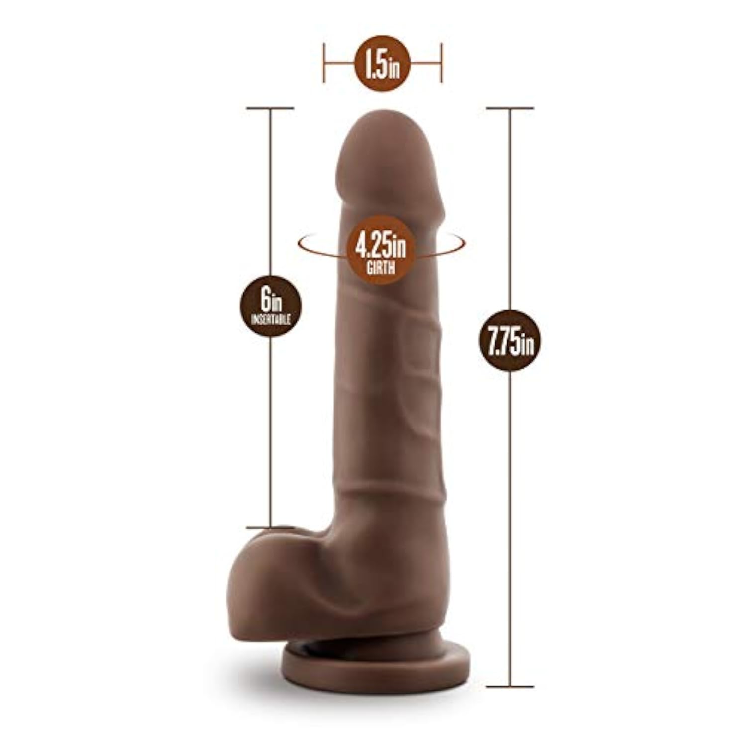 Blush Dr. Skin Realistic 7.75" Chocolate Dildo W/Balls, Long Silm Lifelike Cock For Solo Vaginal & Pegging - Suction Cup, Harness Compatible - Beginner Adult Sex Toy For Women, Men & Couples -(Brown)
