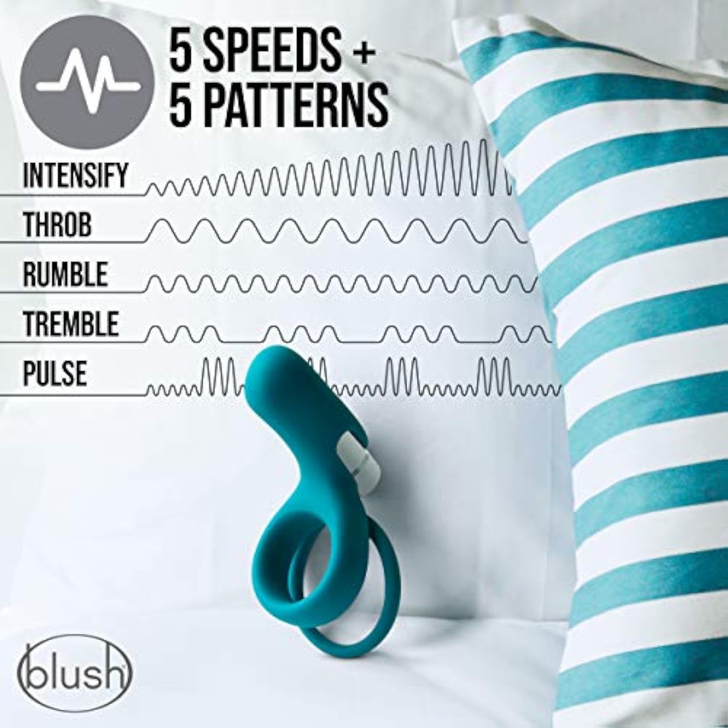 Blush Noje C2 Juniper Vibrating Penis Ring - 10 Vibration Modes, Rechargeable - Soft Silicone Cock Ring With Ball Stretcher Loop - Stronger Erections, Orgasms & Pleasure Couples Adult Sex Toy - (Blue)