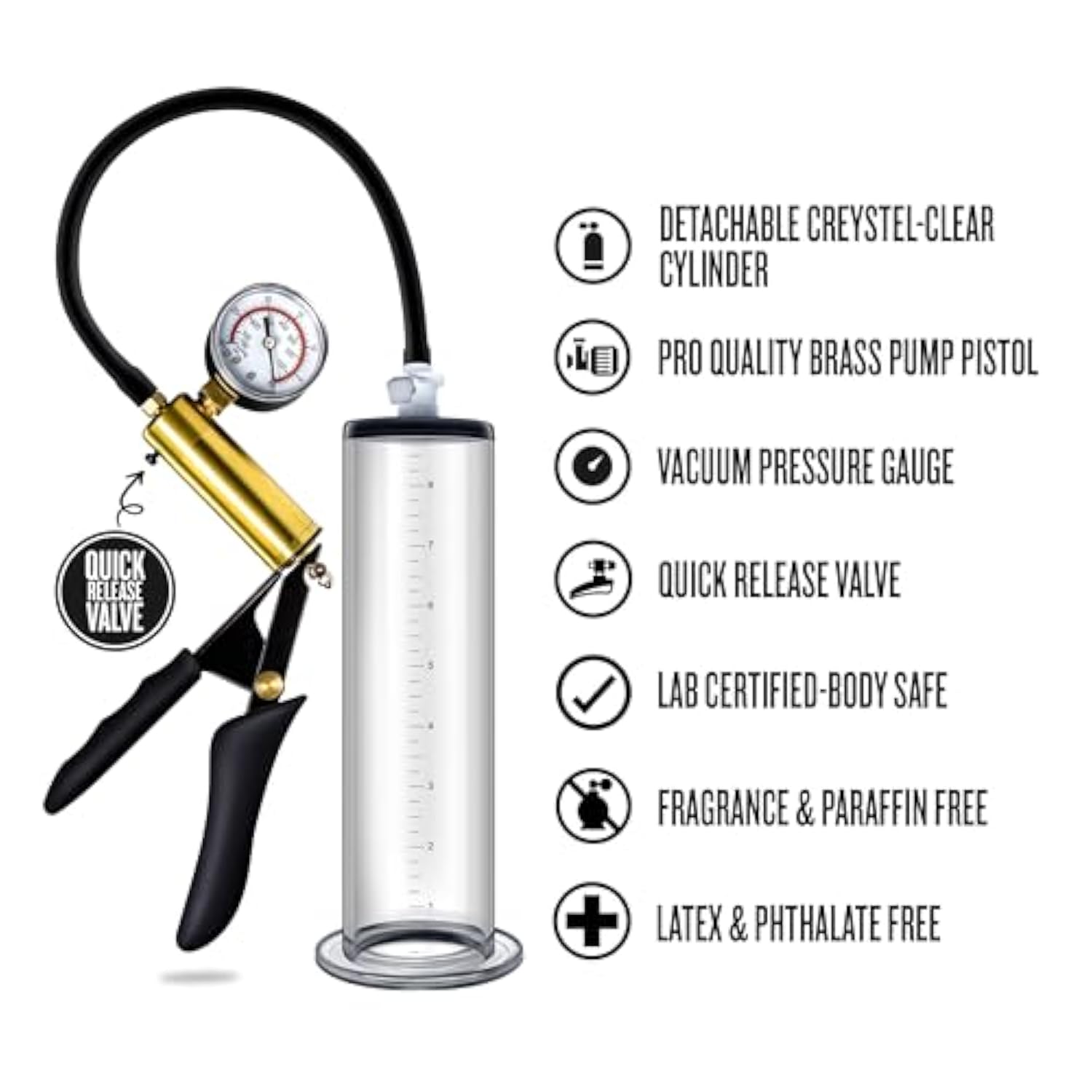 Material And Size: Durable 9.5" Vacuum Cylinder With Etched Markers And Silicone Tubing. Designed For Secure Fit And Reliable Suction. Compatible With Nterchange System Attachments For Customizable Penis Enlargement Results. | | Unique And Premium Quality: Features A Brass Pistol Grip And Precision Pressure Gauge For Professional-Grade Suction. A Powerful Penis Enlargement Device And Male Enhancement Tool For Increased Girth, Length, And Stronger Erections. | | Usability And Safety: Manual Pump With Quick-Release Valve For Safe Pressure Control. Comfortable, Easy To Use, And Great For Beginners Or Experienced Users. Ideal For Erection Support And Penis Enlargement Training. | | Performance And Functionality: Boost Size, Girth, And Erection Quality With Regular Use. This Pump Helps Improve Sexual Performance And Confidence. Functions As A Vacuum Penis Exerciser And Enhancement Tool For Men. | | Experience And Packaging: Part Of The Blush Performance Vx6 System, Compatible With Temptasia Accessories. Interchangeable Parts For Upgrade Flexibility. Ships Discreetly For Privacy. A Reliable Male Sex Tool For Realistic Results. | |