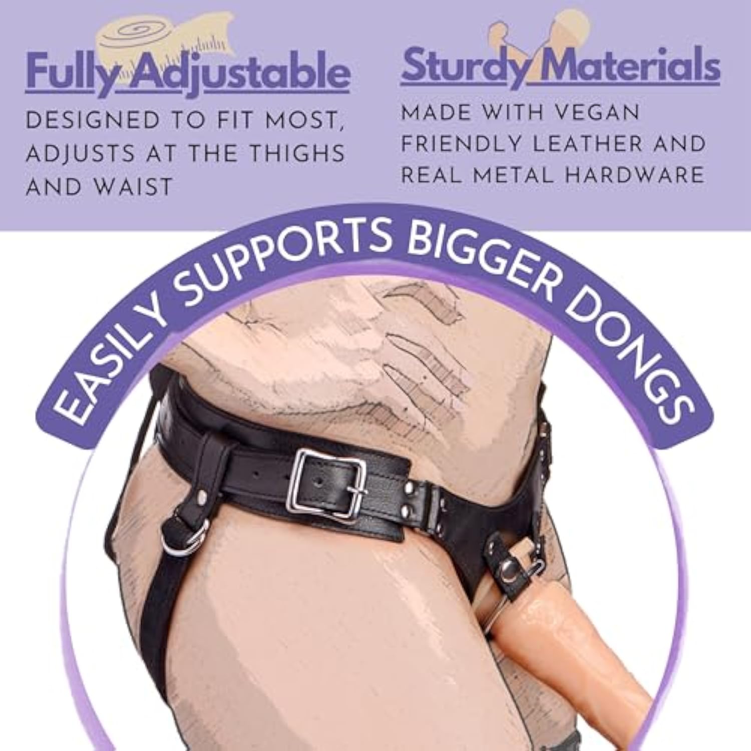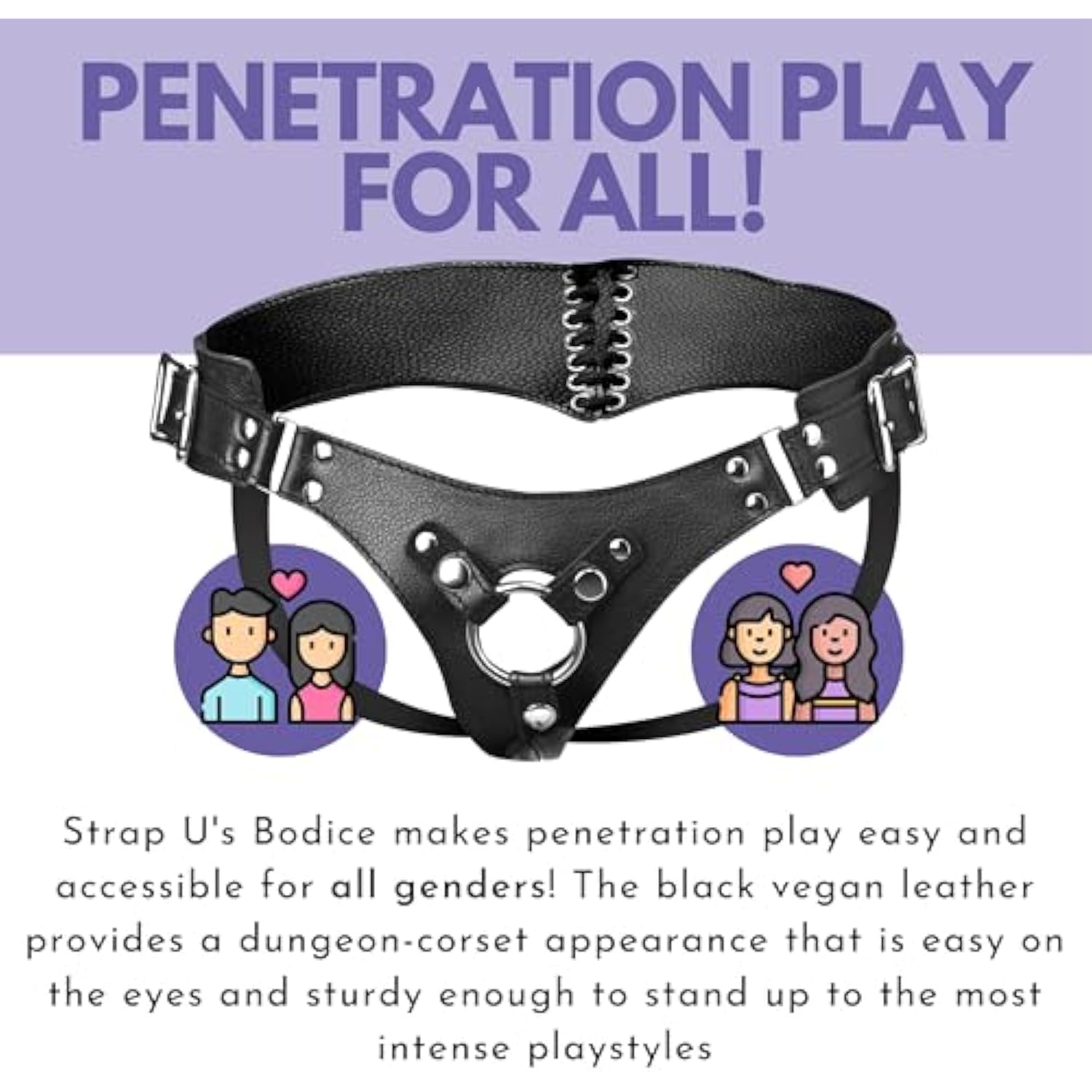 Bodice Corset-Style Strap-On Harness | Vegan Leatherette With Back Lacing, Hip Buckles & Metal O-Ring | Adjustable Fit For Women, Men & Couples | Fits 1.65” Diameter Toys | 43” Max