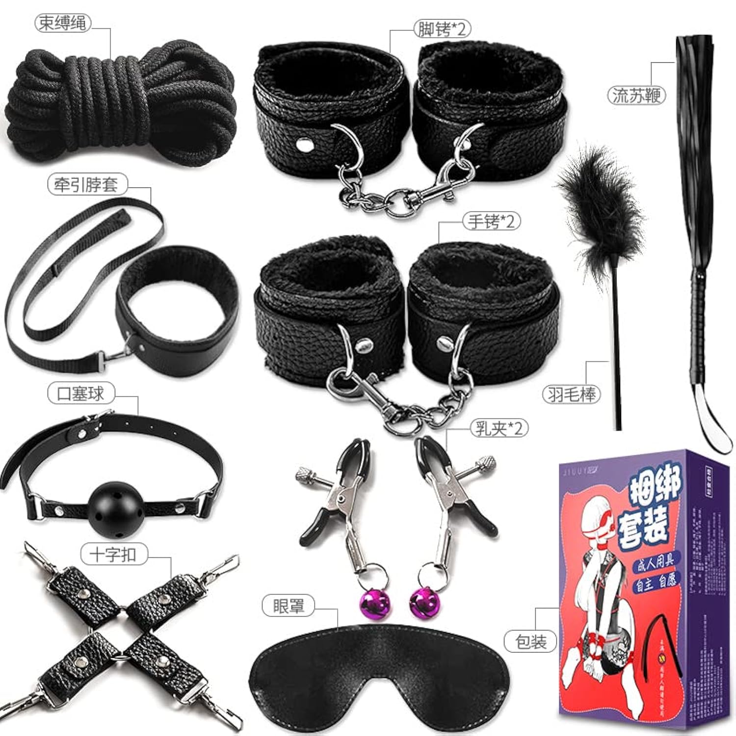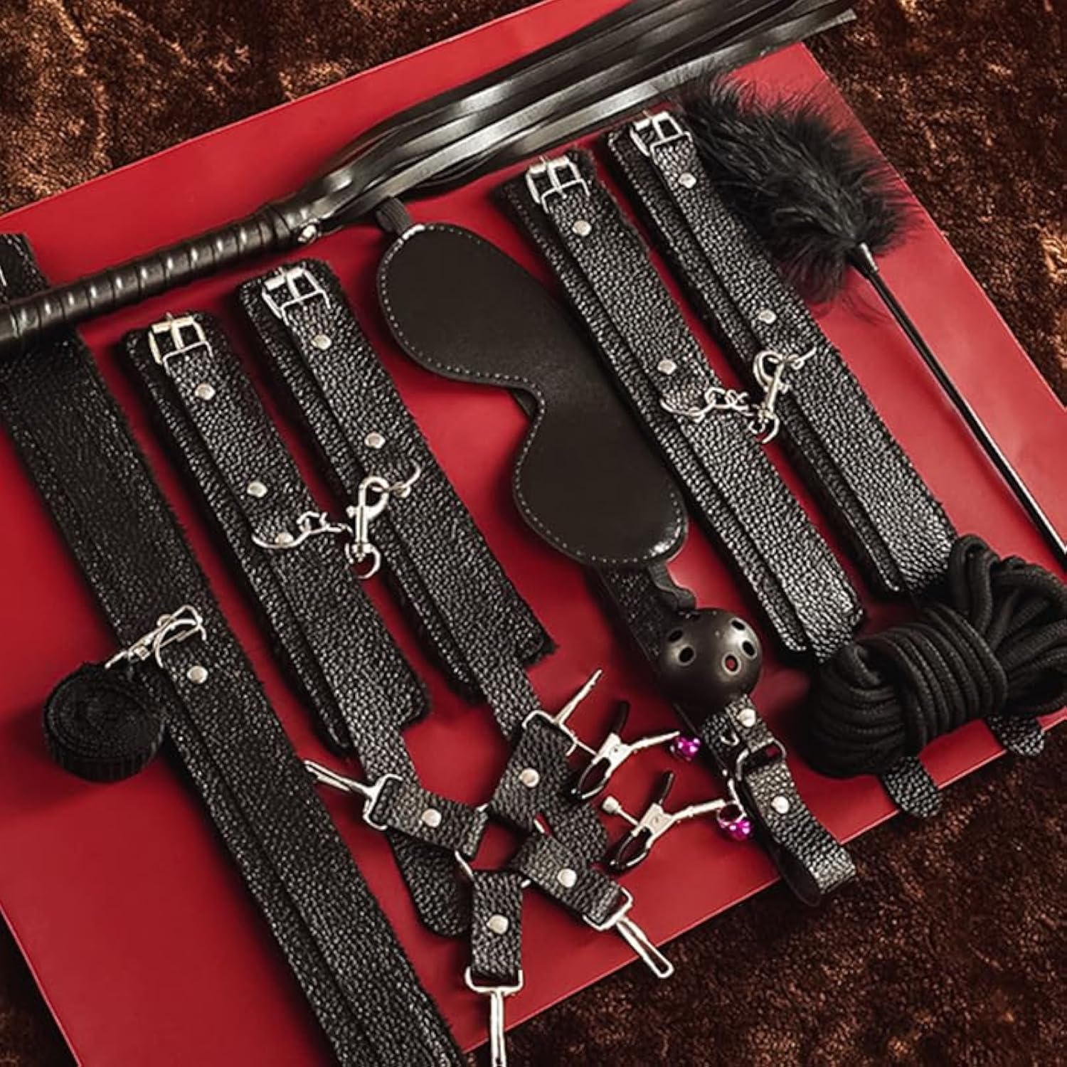 Body Sm Restraints Sex Toys 10 Pcs Bondage Restraints Kits Fetish Bed Restraints Set For Beginners Sm Adult Games Cuffs Gag Blindfold Spanking Paddle Black