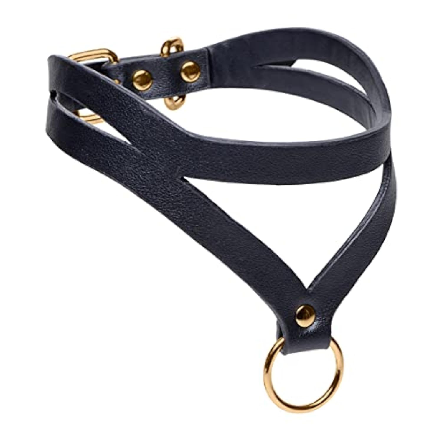 A Striking Aesthetic For Your Neck: The Unique Styling Of The Leather Straps Wraps Around The Neck To Draw The Eyes From The Neck To The Chest | | Lightweight Pu Leather: The Lightweight Leather-Like Material Is Soft And Comfortable So You Can Wear This Baddie Collar For Extended Sessions Without Discomfort | | Nickel Free Metal O-Ring: The Nickel-Free Metal Hardware Is Colored Gold For A More Enticing Appearance In Combination With The Black Leather Straps; Compatible With Most Leashes And Other Accessories | | Adjustable Rolling Buckle: Customize The Tightness Around Your Subs Neck Without Hassle Thanks To The Rolling Buckle; Adjusts From 13.5 Inches To 16.5 Inches In Circumference | | Measurements: Overall Length 19 Inches, Adjusts From 13.5 Inches To 16.5 Inches, O-Ring Diameter 1 Inch | |