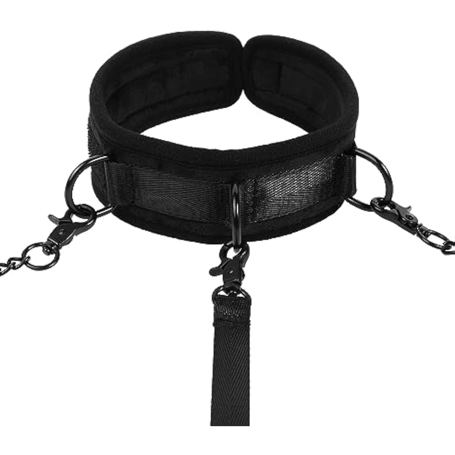 Bondage Collar Leash Set With Nipple Clamps, Blindfold And Studded Heart Spanking Paddle For Adults Bdsm Restraint Sex Toys