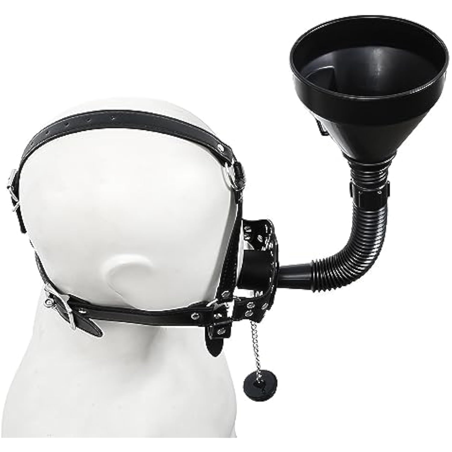 Bondage Gear Accessories With Funnel Gag Leather Restraints Toys With Sexy Erotic Rivets Lid Bdsm Fetish For Men Women Couple Sex Play (Black)