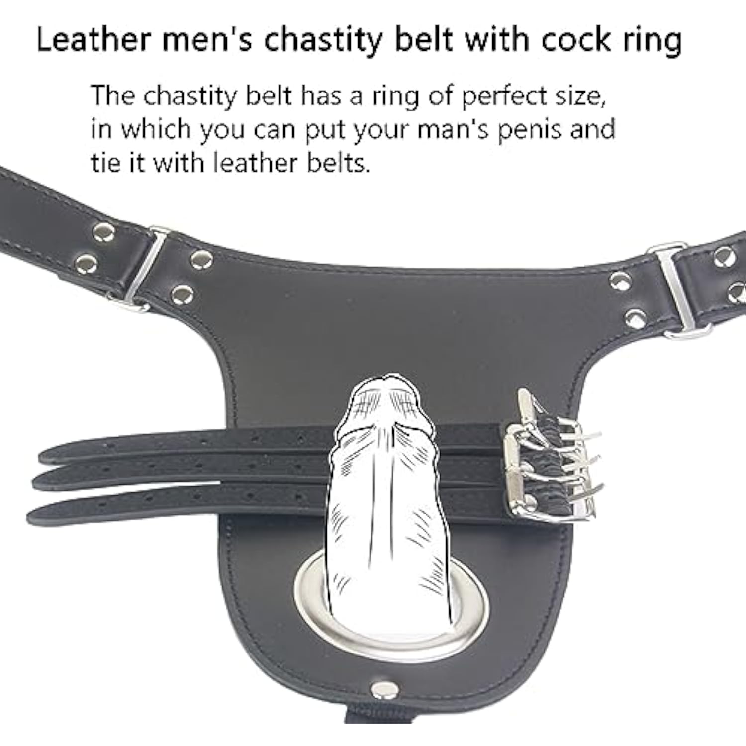 Bondage Gear Chastity Device Harness With Leather Cock For Men, Adult Men'S Bondage Leather Chastity Lock Pants, Sm Bdsm Fetish Sexy Male Lingerie Sex Toy