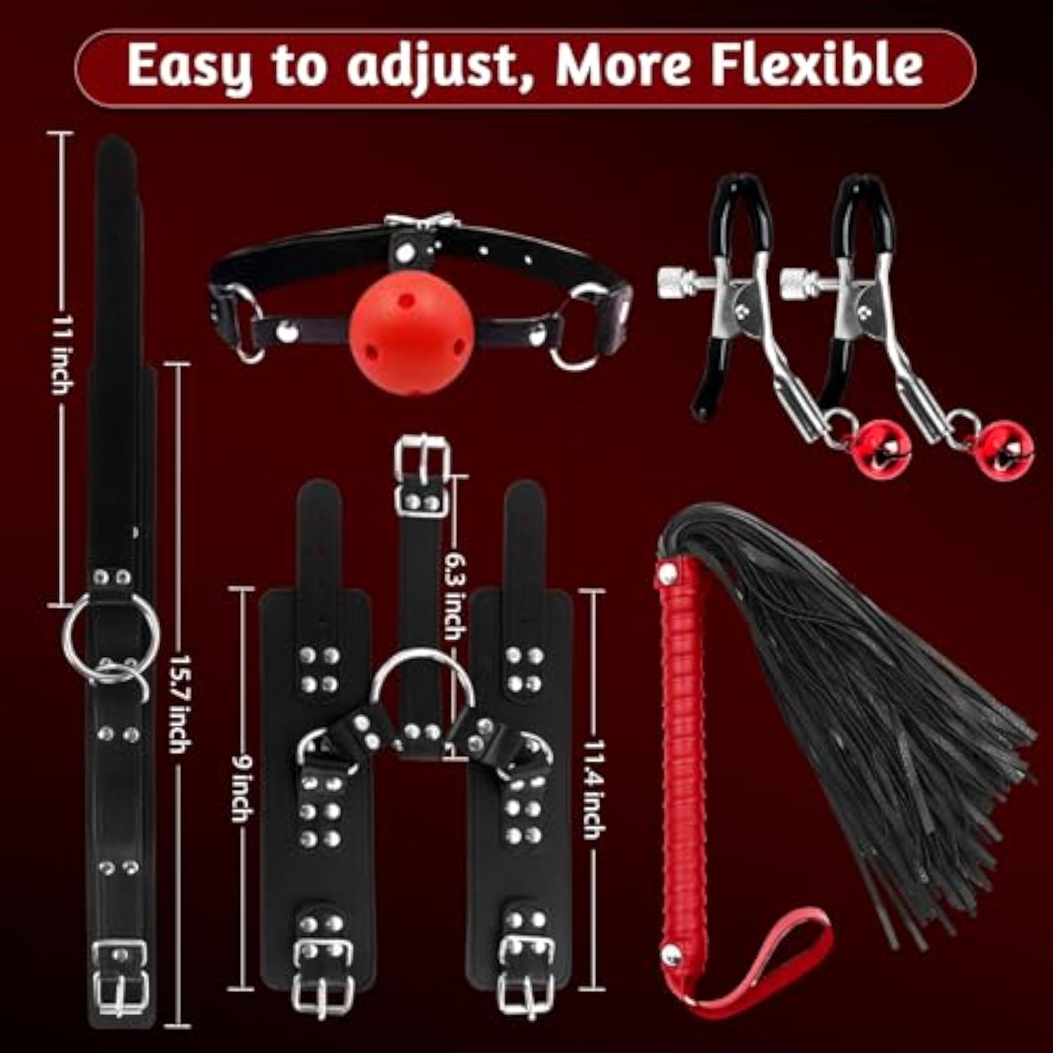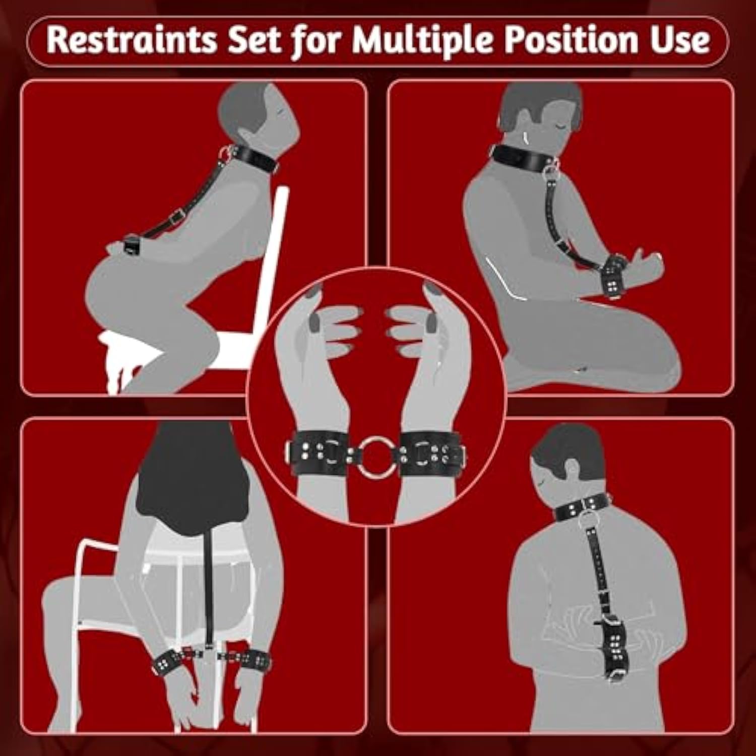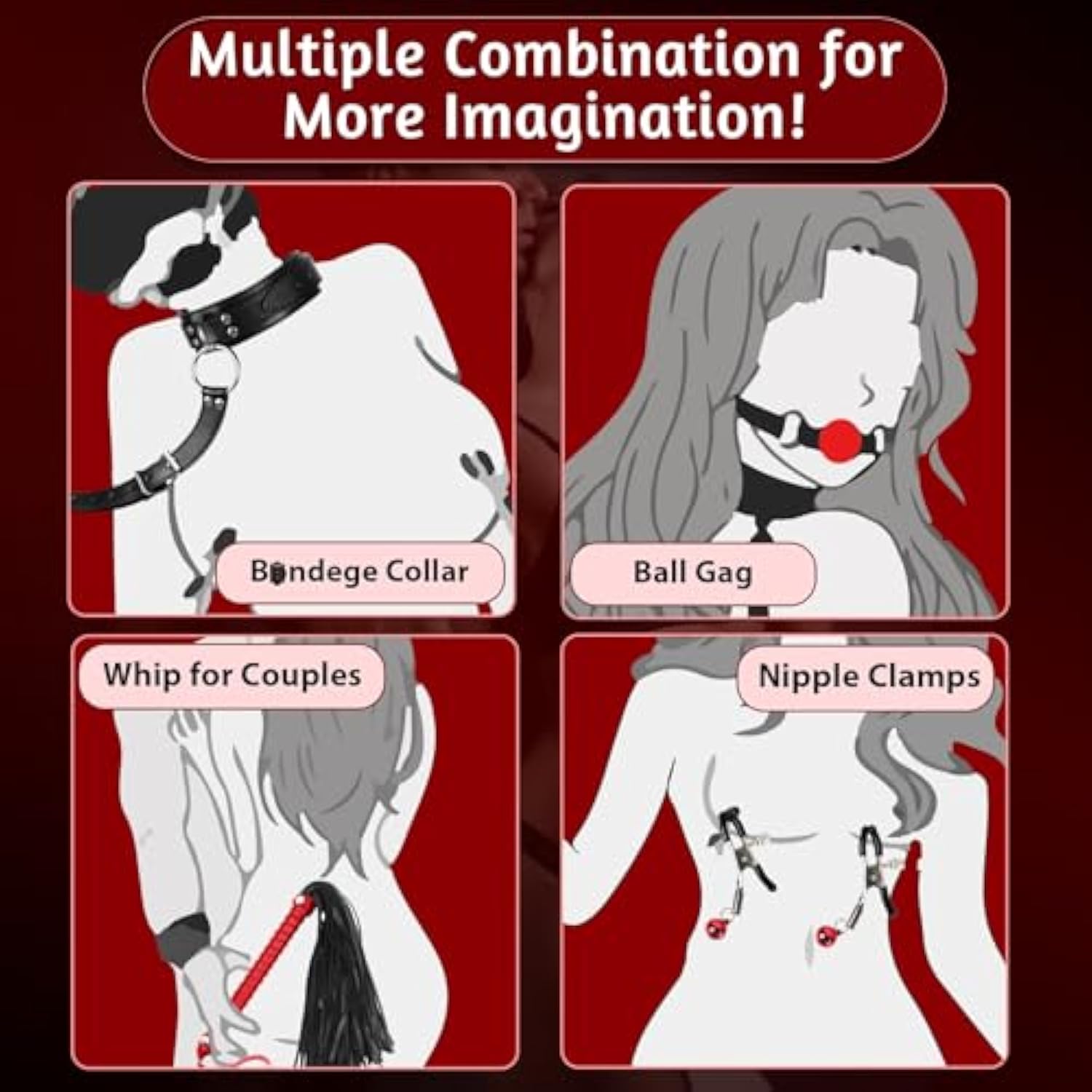 Bondage Neck To Wrist Restraints Sex Toys, Bdsm Couple Handcuffs Collar Adjustable With Nipple Clamps Ball Gag Sex Whip, Sex Bondage Set Adult Toys For Couples