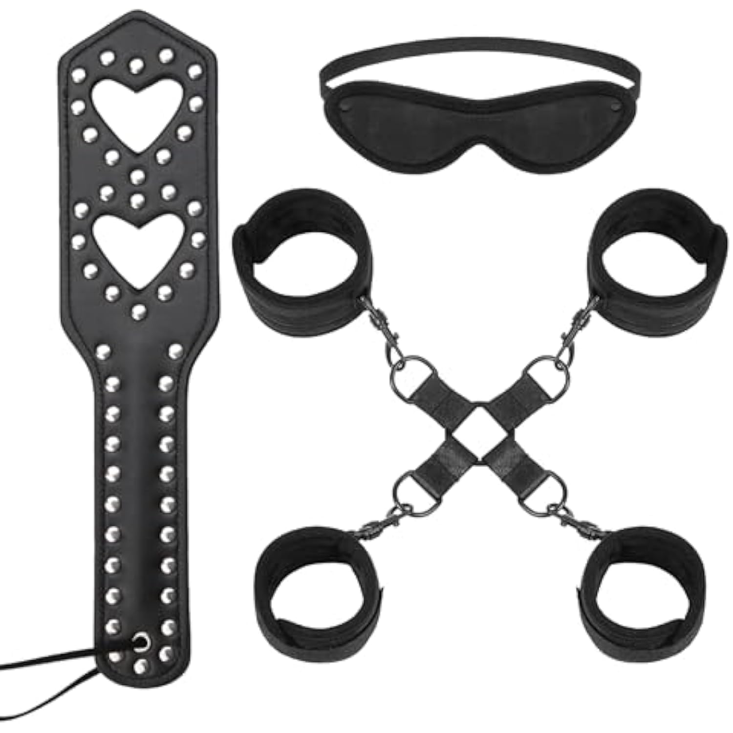 Bondage Restraint Hogtie Set, Handcuffs Ankle Cuffs Blindfold And Spanking Paddle For Adults Sex Play Toys