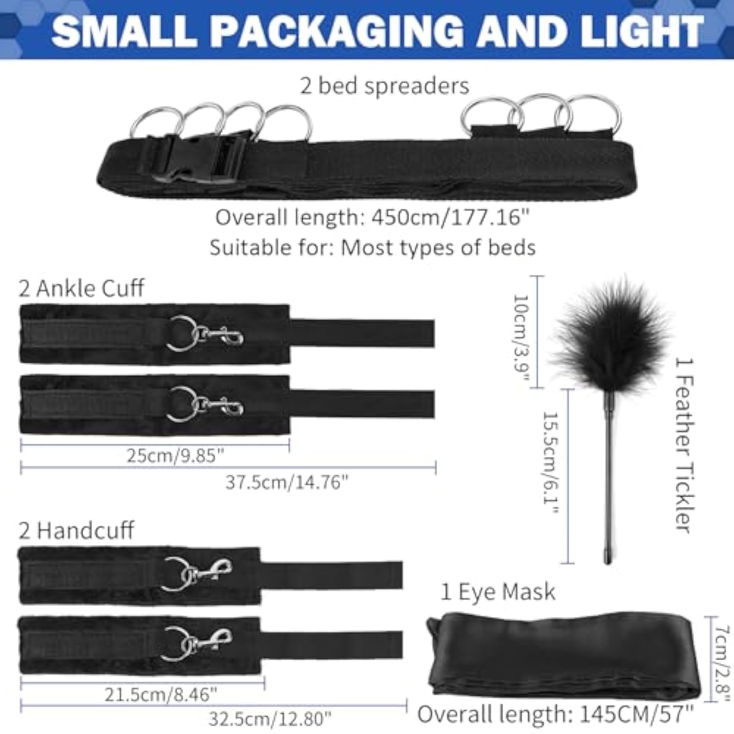 Bondage Restraint Kit 8 Pcs Adjustable Bed Restraints Leather Bondage Sets Adult Sex Toys With Fetish Handcuffs & Ankle Cuff Blindfold & Tickler For Women And Couples
