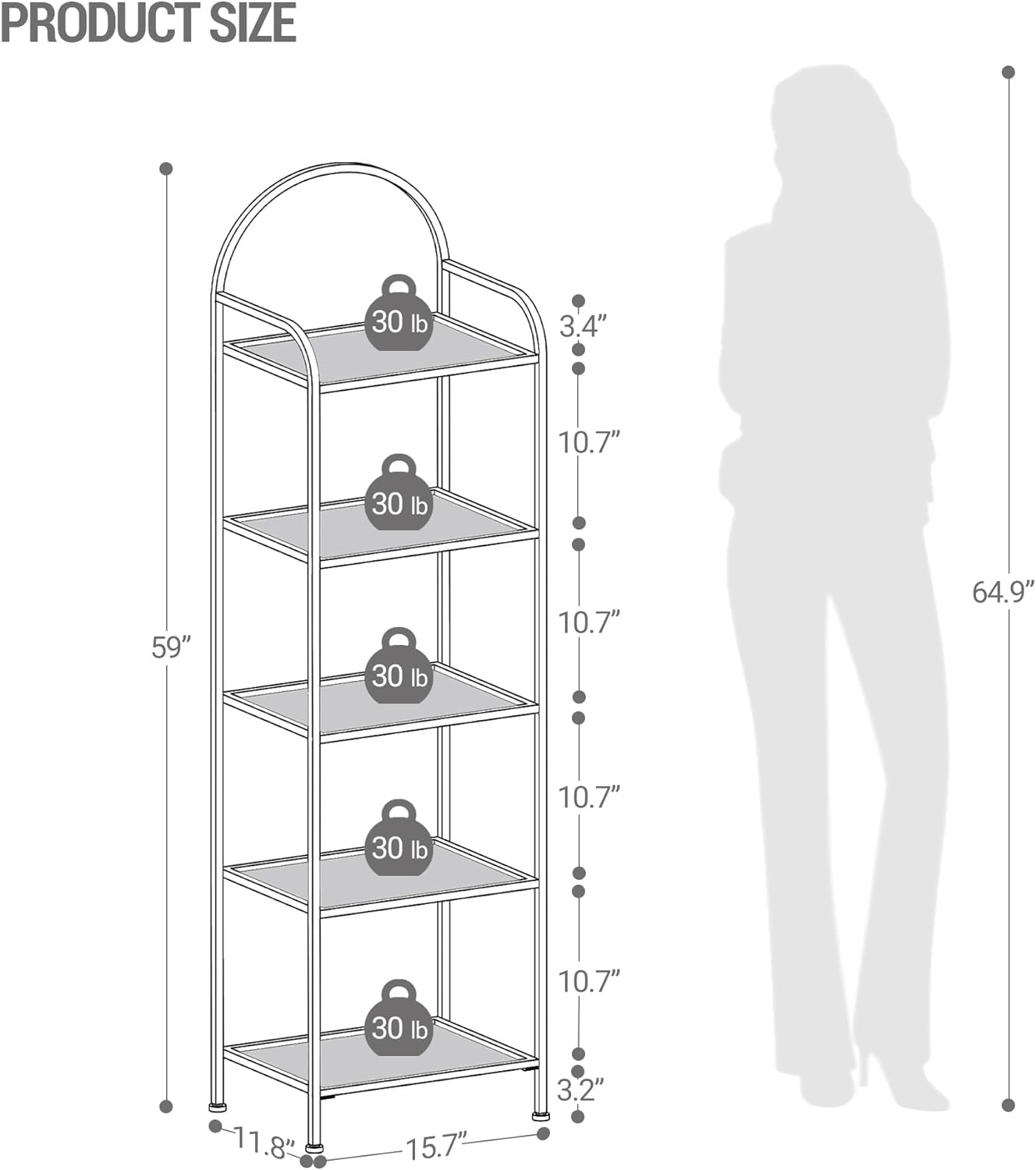 - Maximize Enough Space: Sized at 15.7"W x 11.8"D x 61"H, this book shelf takes up only little floor space but allows you to make full use of the vertical space for storage. Designed on both sides of the top to prevent items from falling