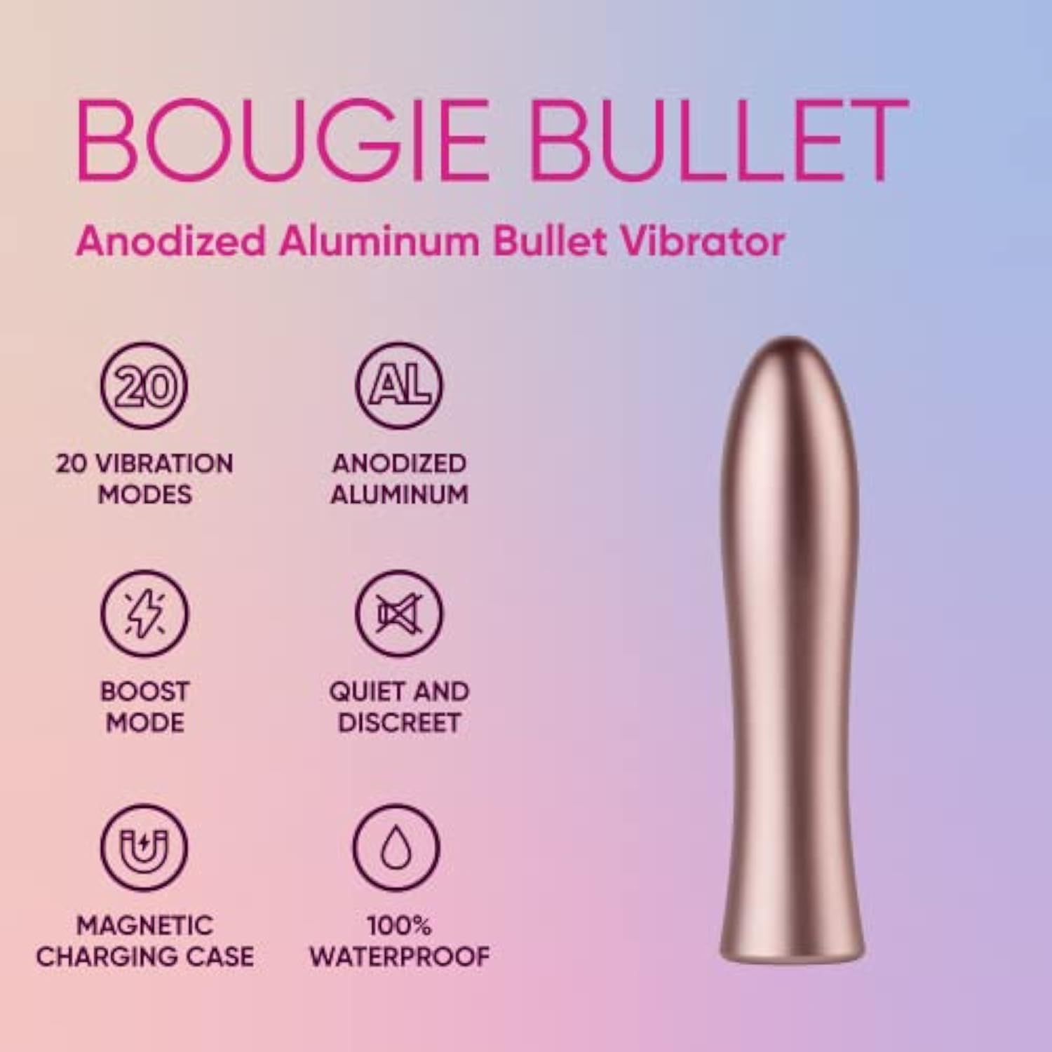 Temperature Play – Crafted From Smooth Anodized Aluminum That'S 100% Body-Safe, This Sex Toy Is Perfect For Temperature Play. Chill This Oh-So-Satisfying Mini Vibrator In The Fridge Or Warm It In Warm Water For A Thrilling Sensation (Yes, It'S Waterproof!) | | Upgraded For Your Euphoria - Spoil Yourself With 20 Modes A Luxurious Design That Will Satisfy Your Every Desire. Upgraded For More Intensity Less Sound, This Quiet Yet Powerful Small Vibrator Will Be The Only Womens Sex Toy You Will Ever Need | | Activate Boost Mode – Unleash Mind-Blowing Pleasure With Boost Mode By Pressing The Lightning Bolt Button And Reach The Orgasm Of Your Dreams. This Womans Vibrator, Part Of Our Exquisite Range Of Adult Toys, Is The Ultimate Sexual Wellness Tool | | Magnetic Charging Case Compact Design - This Personal Massager Is Perfectly Sculpted Sized To Travel Anywhere. Simply Store The Slim Vibrator Bullet In The Included Usb Rechargeable Case, Just Like Your Earbuds | | Let'S Get Wet - Bougie Bullet Massager Is 100% Waterproof, So You Can Dive Into Sensuality In The Shower Or Bathtub. Elevate Your Experiences With This Quiet Vibrator, Perfect For Intimate Moments Solo Or With A Partner | |