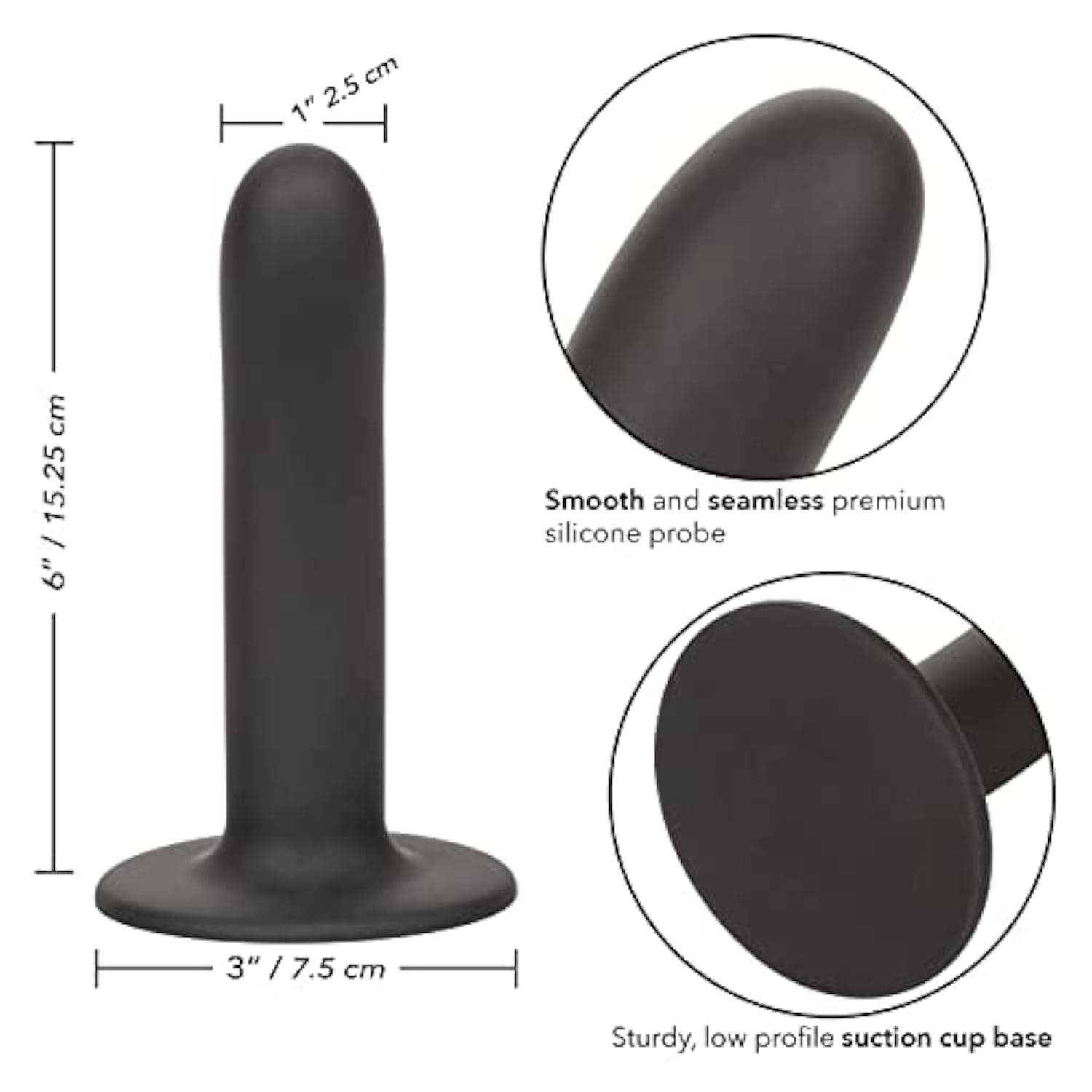 6 X 1 Inch (15.25 X 2.5 Cm) Smooth And Seamless Premium Silicone Probe | | Curved, Extended Design For Comfort And Ease Of Use | | Sturdy, Low Profile Suction Cup Base | | Fits Most Harnesses | | Care: Prior To And After Each Use, Wash With Warm Water And Mild Soap; 1-Year Manufacturer | |