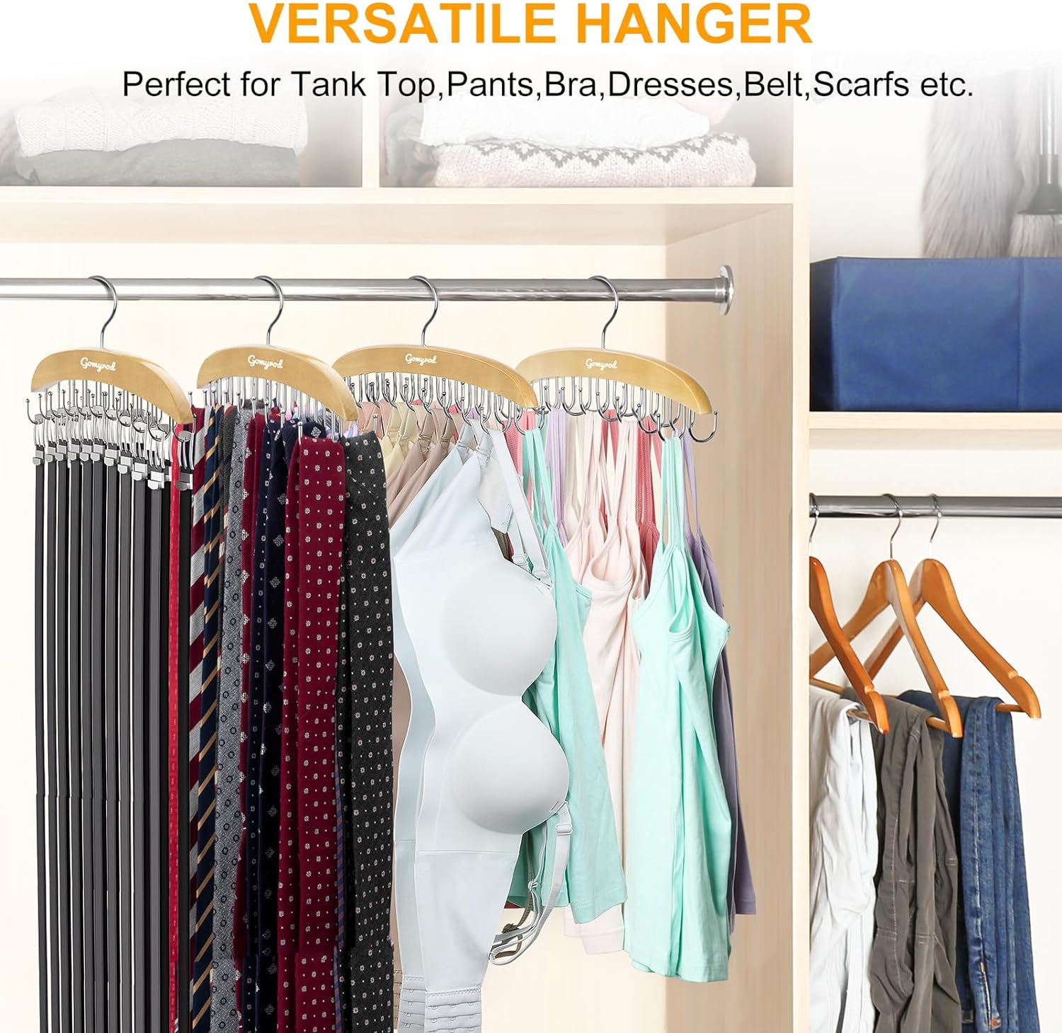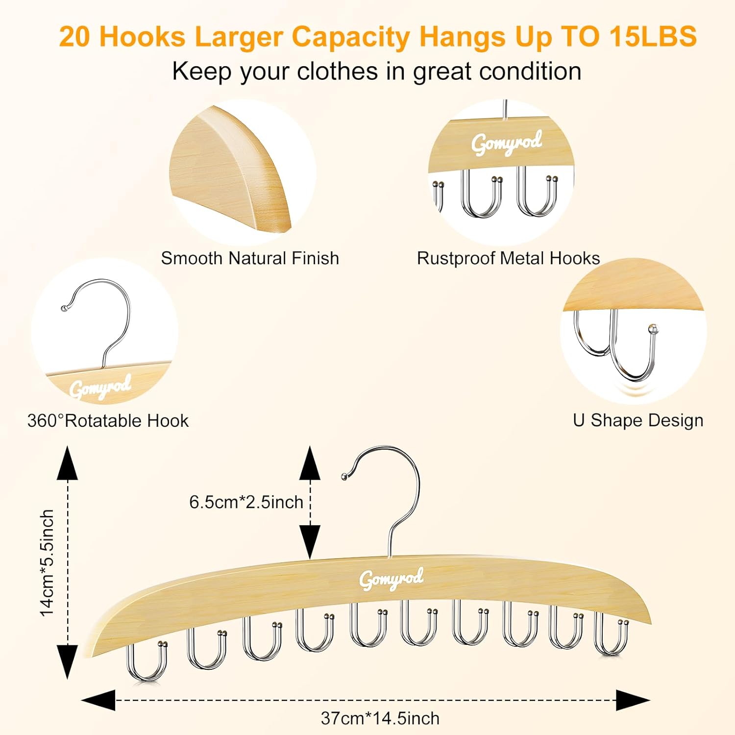 Bra Hanger for Closet, 20 Hooks Capacity Tank Top Hanger Premium Wooden Closet Foldable Metal Hooks Camisole Organizer for Hangers Space Saving, 360°Rotating, Closet Organizers and Storage-2 Pack