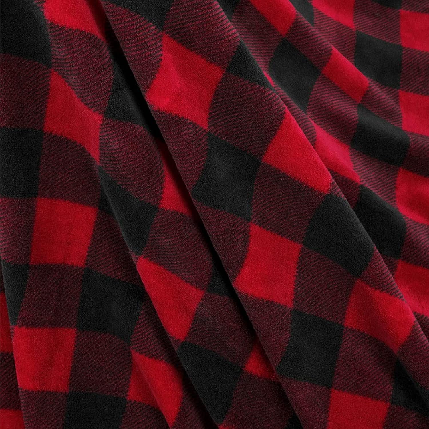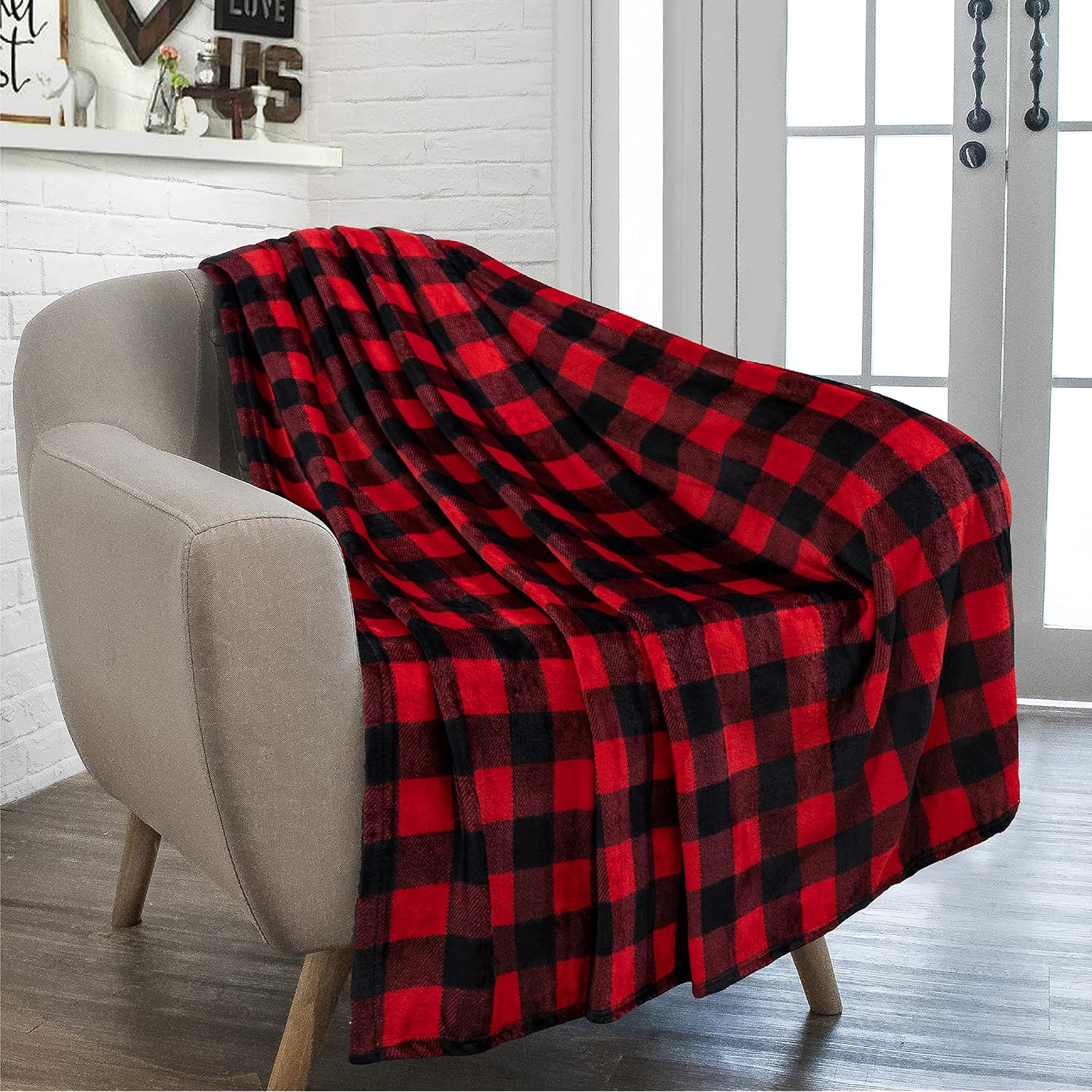 Buffalo Plaid Throw Blanket For Sofa Couch | Soft Flannel Fleece Red Black Checker Plaid Pattern Decorative Throw | Warm Cozy Lightweight Microfiber | 50 X 60 Inches