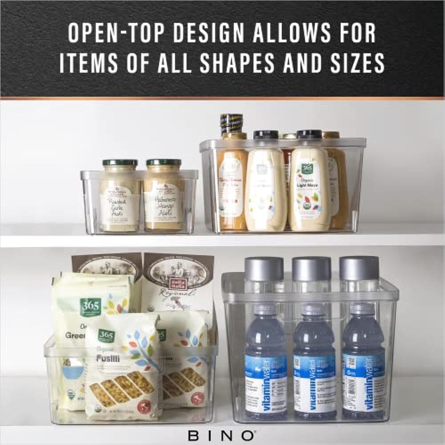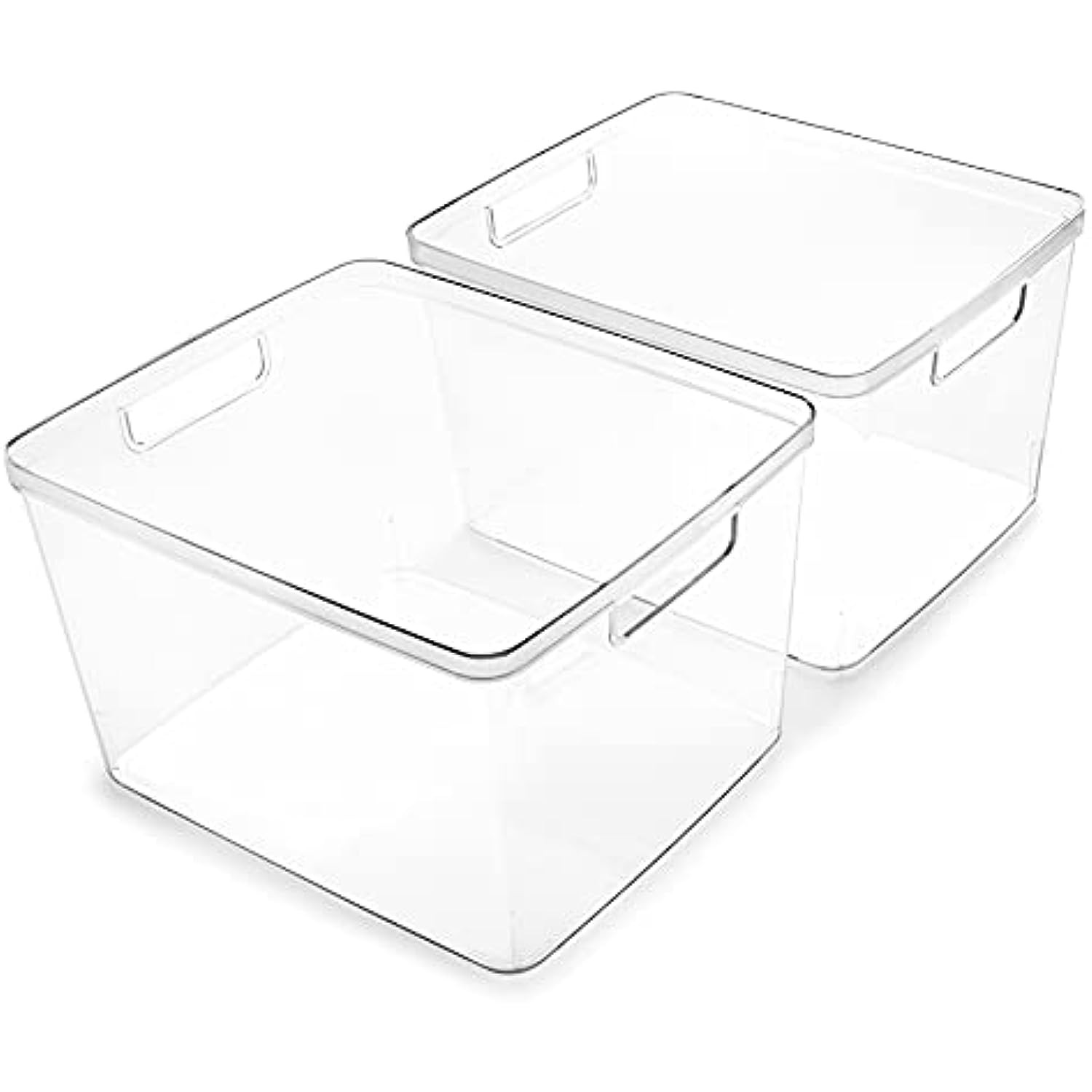 - Space-saver: Pantry organization and storage just got much easier with our space-saving clear plastic bins. Designed for easy storage organization, our durable, sturdy, leakproof storage bins for the pantry, kitchen, and fridge help arrange your home goods and essentials for a tidy, clutter-free space. The see-through sides of our plastic bins also make it quick to find your stuff with a glance.