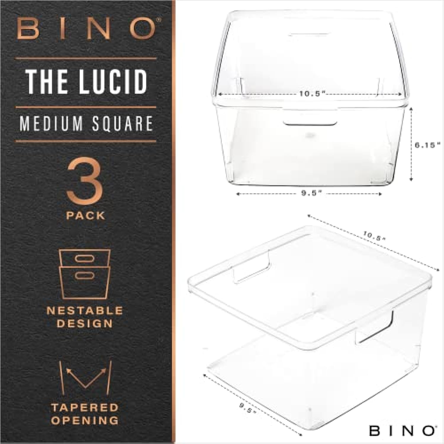- Expertly Designed: Our pack of 3 clear storage bins is expertly crafted for functionality and convenience. THE LUCID COLLECTION features BPA-free plastic organizer bins with smooth cutout handles on both sides for easy lifting, sliding, and transportation. Our square clear organizers also have rounded corners with elevated bottoms on four edges.