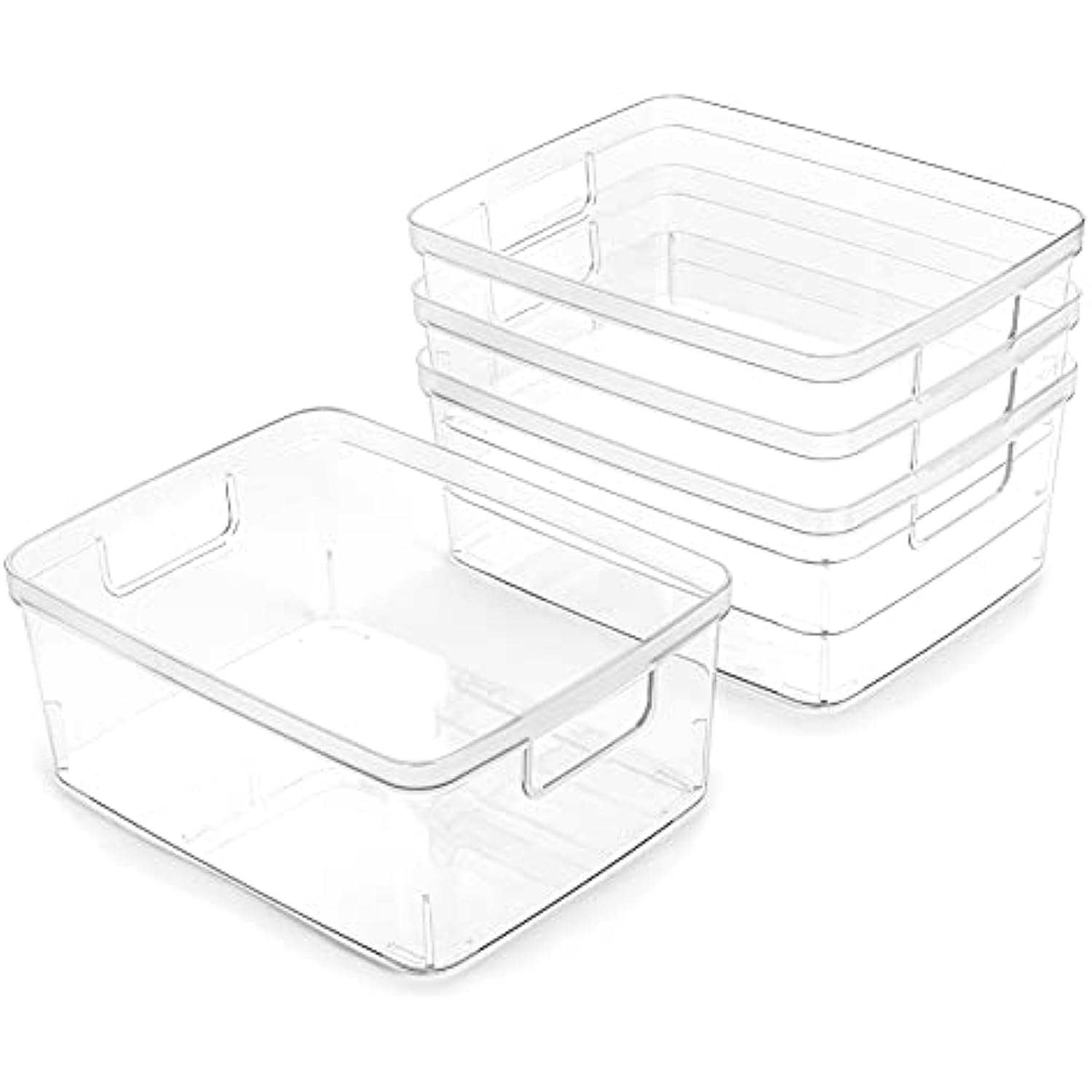 - Multipurpose Bins: THE LUCID COLLECTION is a fantastic fridge organizer collection for sorting vegetables and produce. These clear bins for organizing items can also help save space just about anywhere. Let our clear plastic storage bins do the work for you. They are versatile enough to be used as a bathroom organizer for toiletries, medicine storage bins, plastic containers for arts/crafts supplies, toys, and holiday decorations. Have them as handy containers for closets, garages, and more!