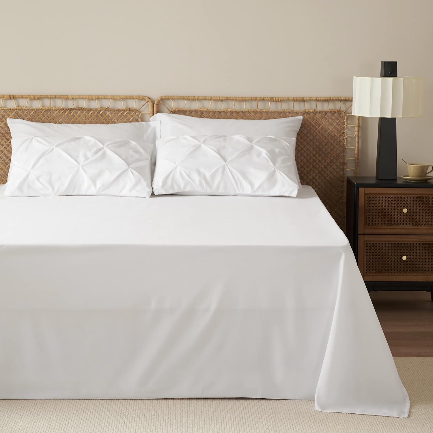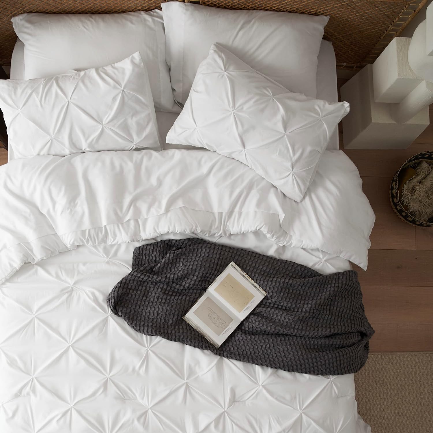 California King Comforter Set - Cal King Bed Set 7 Pieces, Pinch Pleat White Cali King Bedding Set With Comforter, Sheets, Pillowcases & Shams