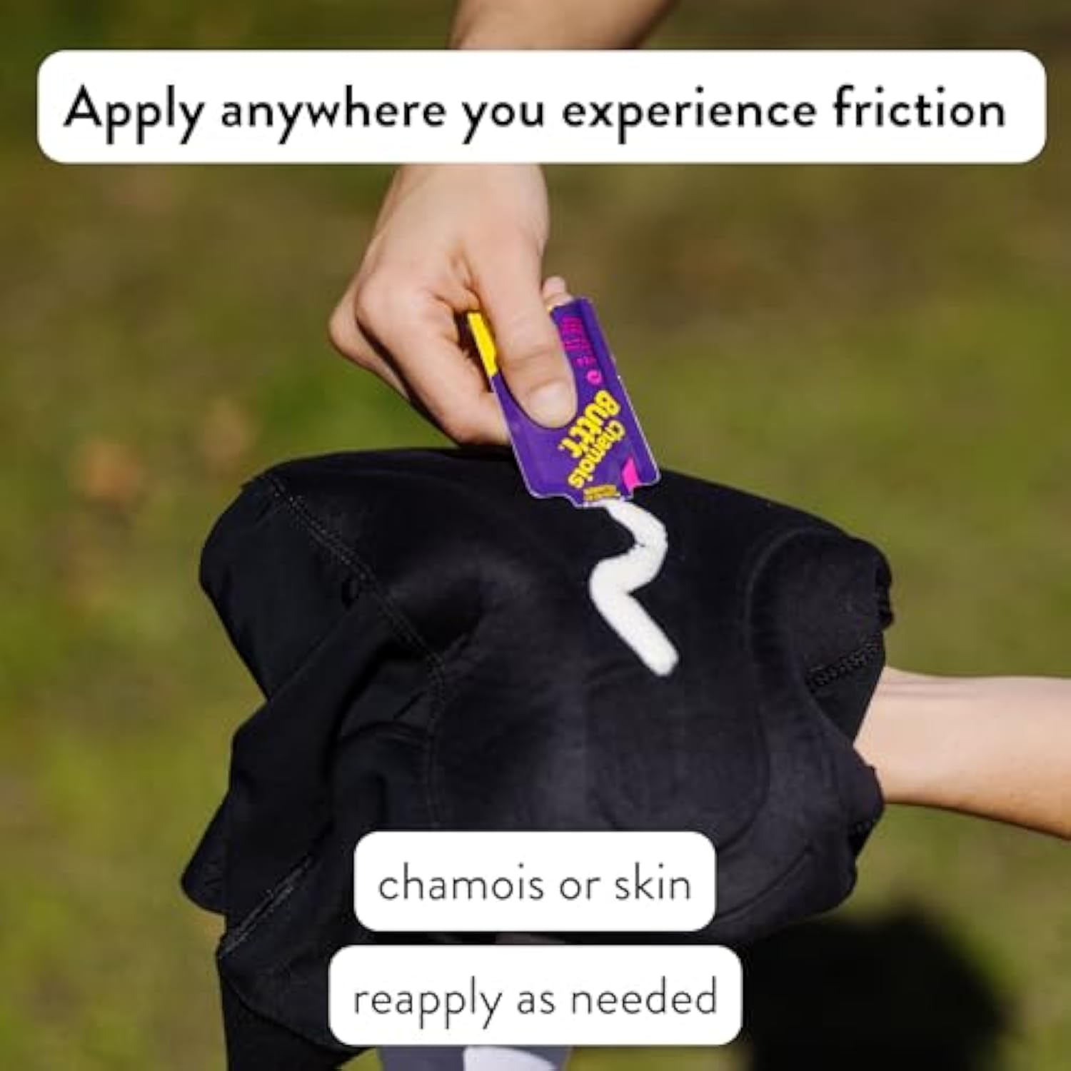 | Utilizes aloe vera, green tea leaf extract, tea tree oil, shea butter, lavender oil for their naturally occurring beneficial properties | | 75 - 9mL packets of Chamois Butt'r Her' | | Made in the USA | | Washes off skin and clothing with soap and water | | Contains no artificial fragrances or colors and is paraben and gluten free | |