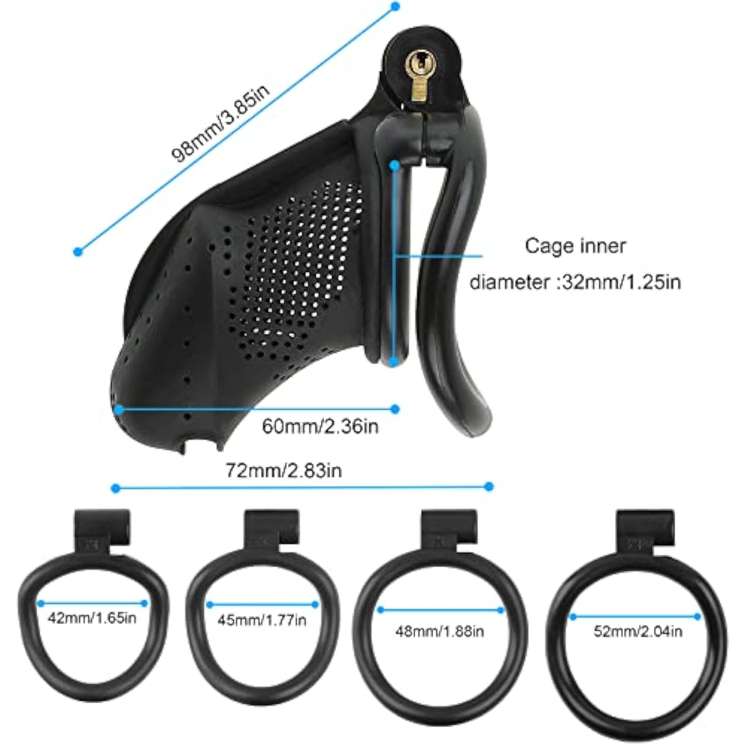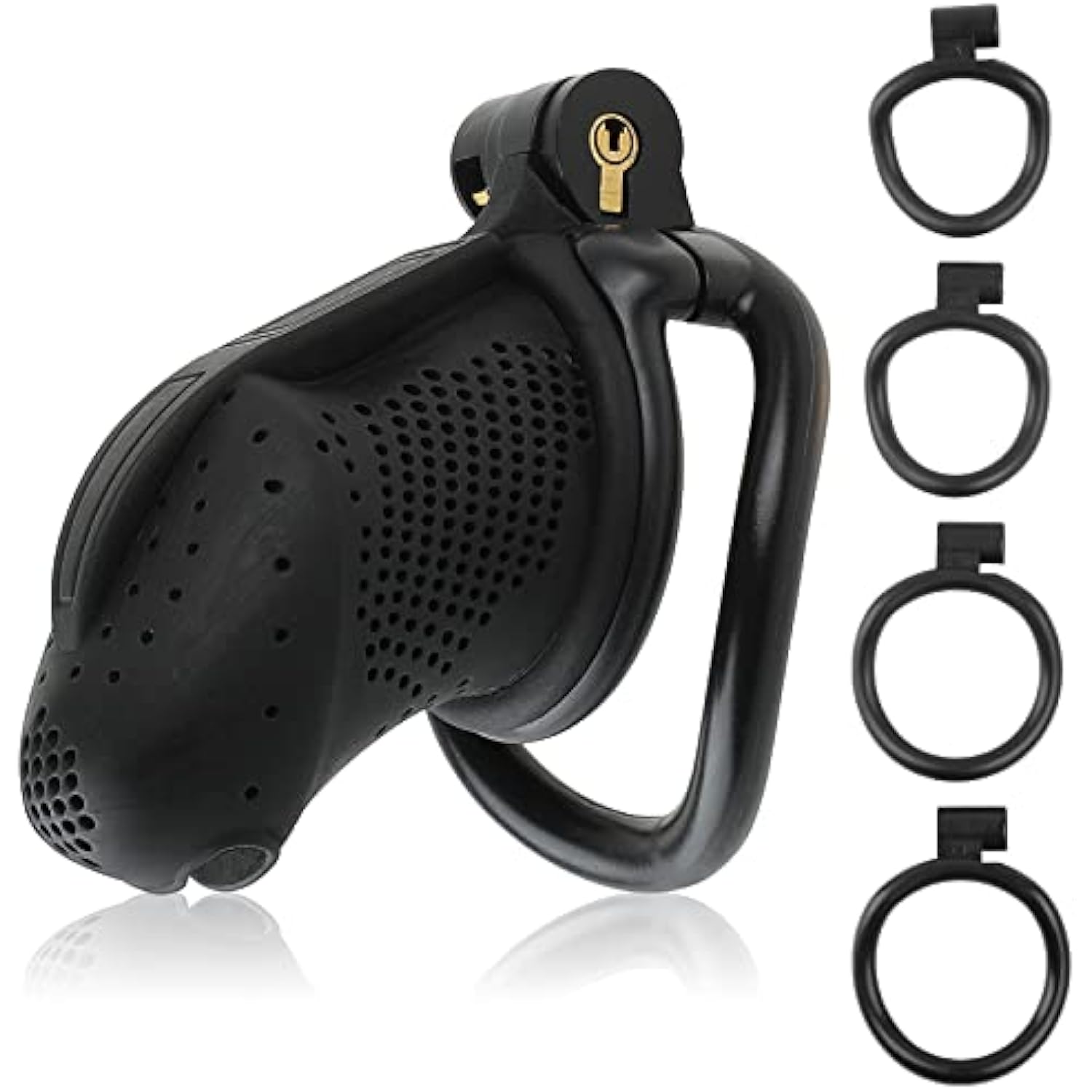 Chastity Device Cock Cage-Upgraded New Material?Light Nylon Resin?Large Male Chastity Lock With 4 Removable Rings For Penis Exercise And Adult Games Sex Toy For Men | Black